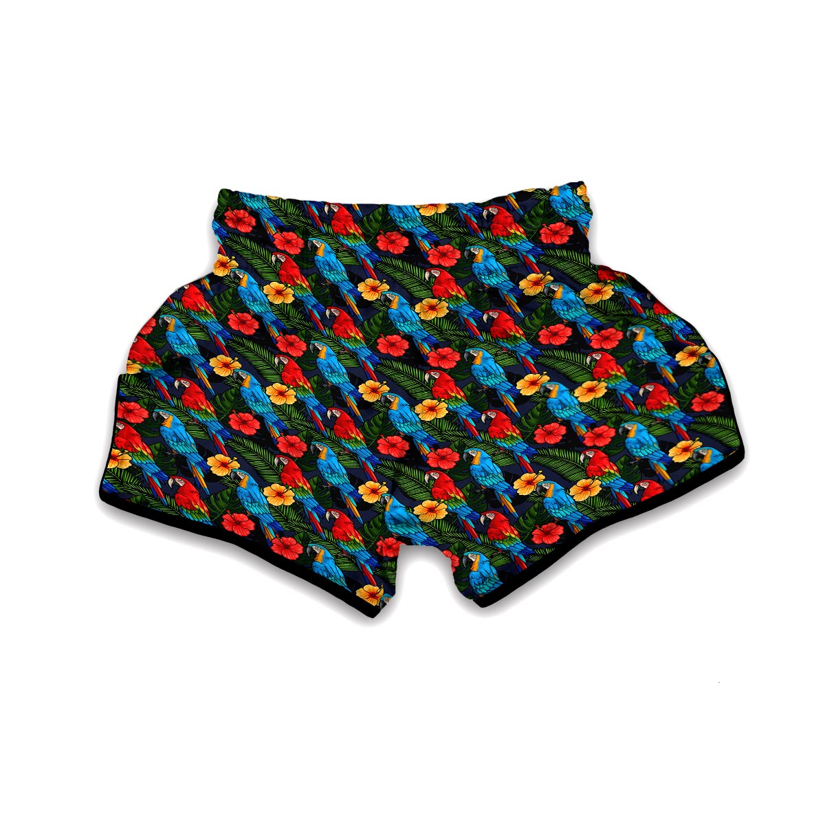 Floral Parrot Bird Pattern Print Muay Thai Boxing Shorts
