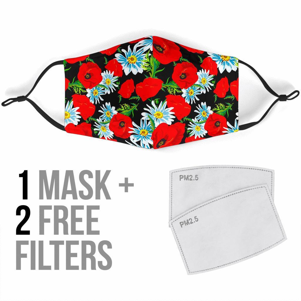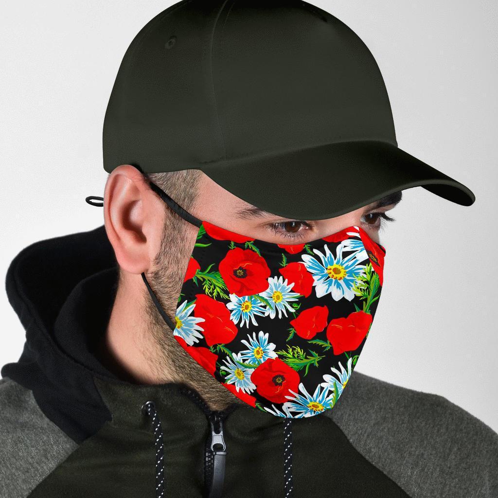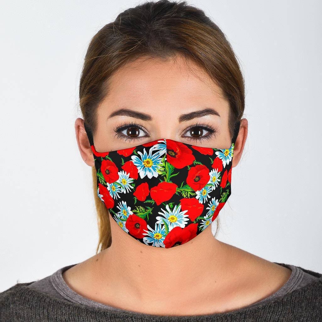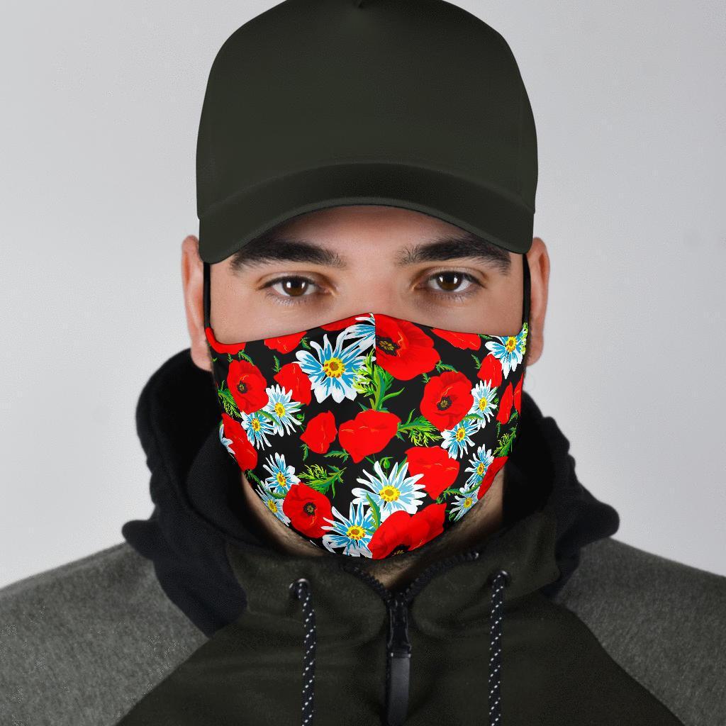 Floral Red Poppy Pattern Print Face Mask