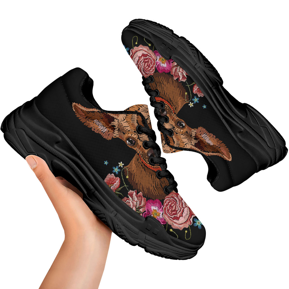 Looking for unique chunky shoes? Check out our Flower And Chihuahua Embroidery Print Black Chunky Shoes at Grizzshopping. Our chunky shoes are handcrafted to the highest quality standards that custom made for you