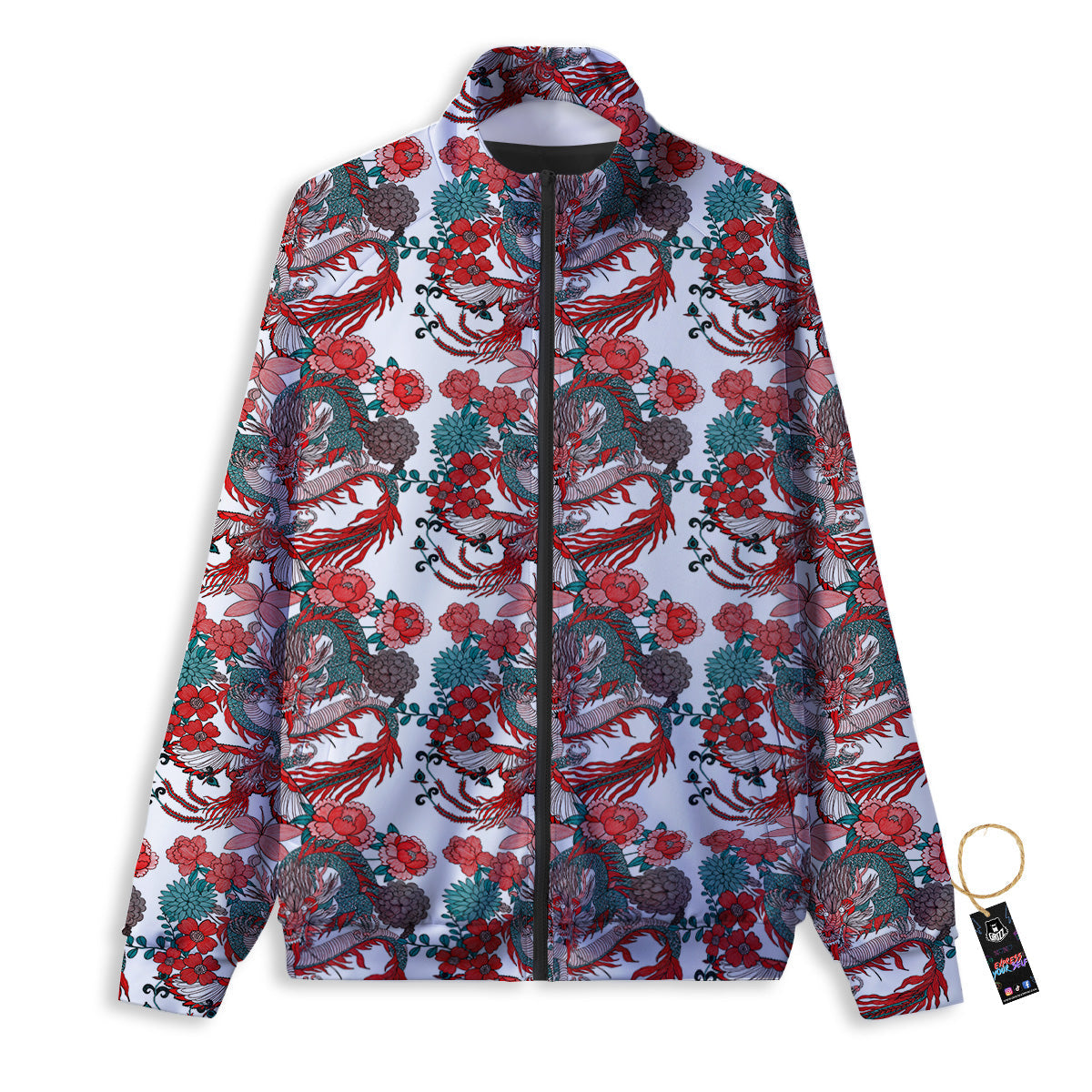 Flower And Chinese Dragon Print Pattern Track Jacket