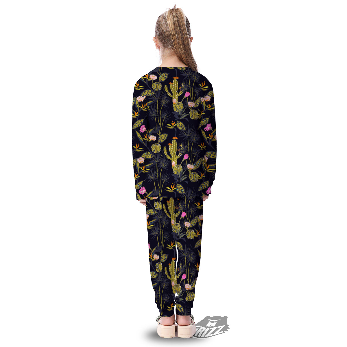 Flower And Vintage Cactus Print Pattern Kid's Pajamas