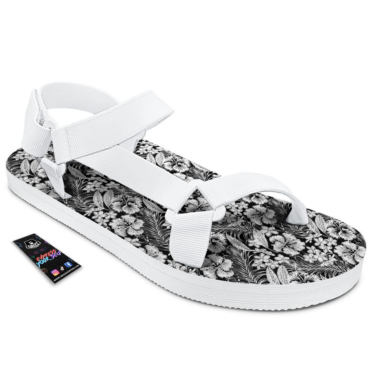 Looking for unique toe sandals? Check out our Flower Black Plumeria Print Pattern White Open Toe Sandals at Grizzshopping. Our toe sandals are handcrafted to the highest quality standards that custom made for you
