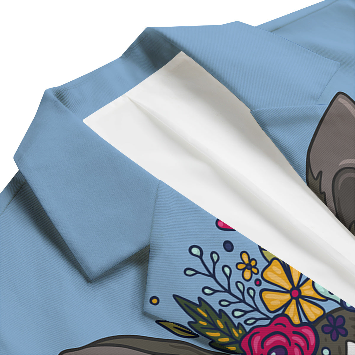 Flower Boston Terrier Cartoon Print Men's Blazer