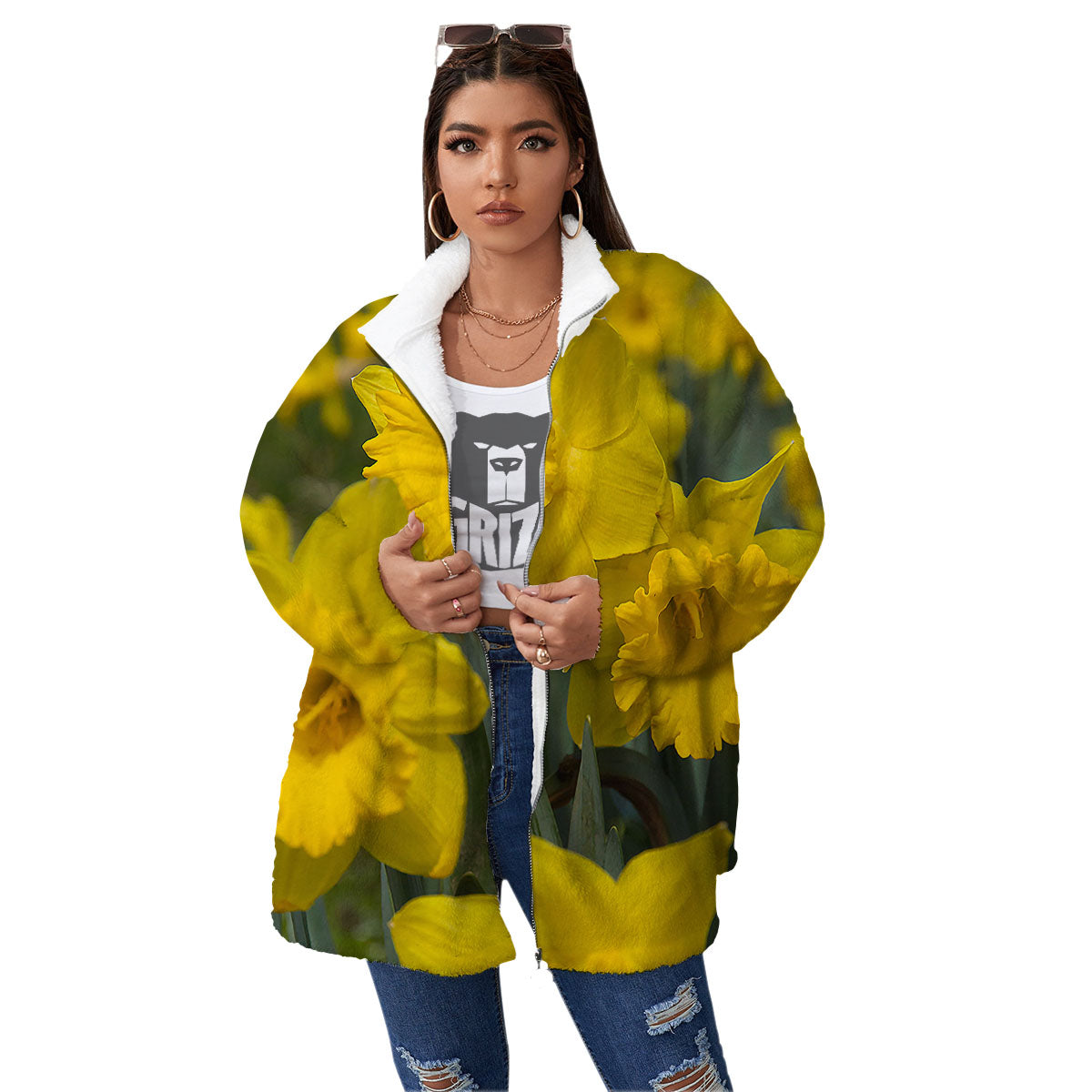Flower Daffodil Yellow Print Women's Sherpa Jacket