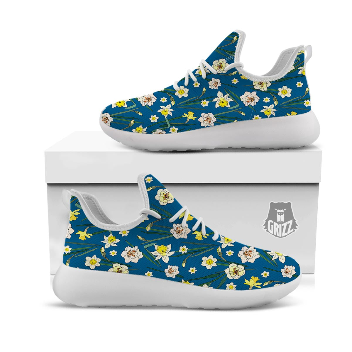 Flower Spring Daffodil Print Pattern White Athletic Shoes