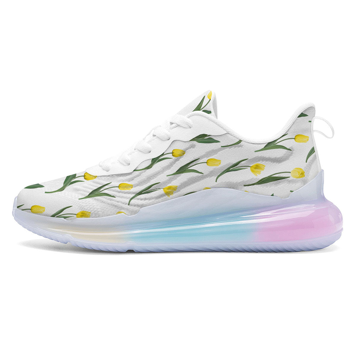 Flower Yellow Tulip White Print Pattern Running Sneakers