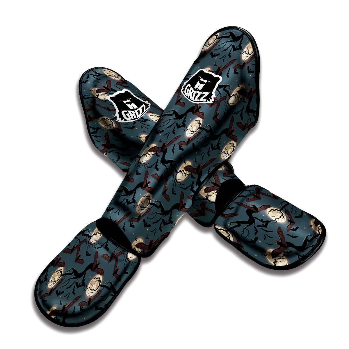 Flying Bat In The Moonlight Print Pattern Muay Thai Shin Guards