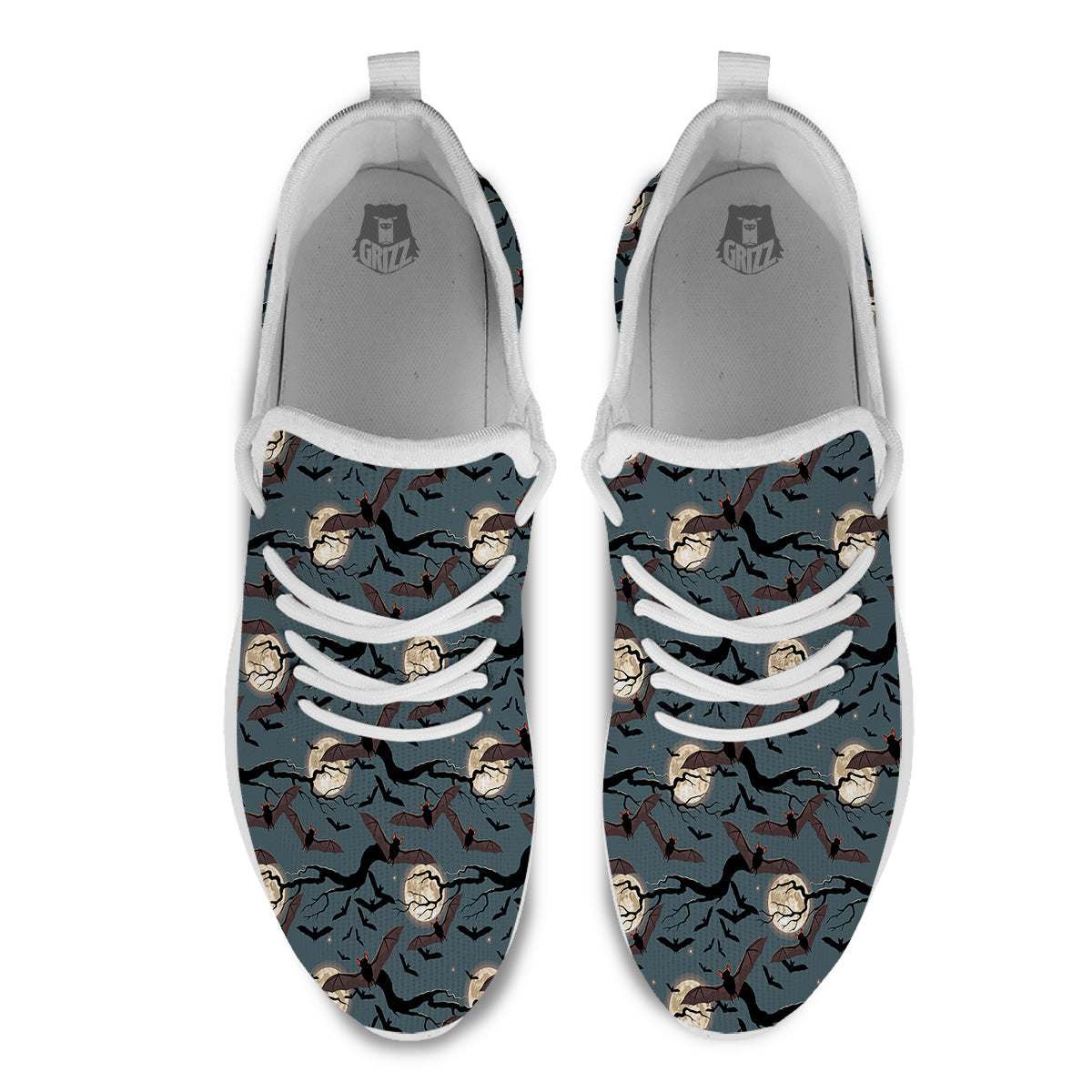 Flying Bat In The Moonlight Print Pattern White Athletic Shoes