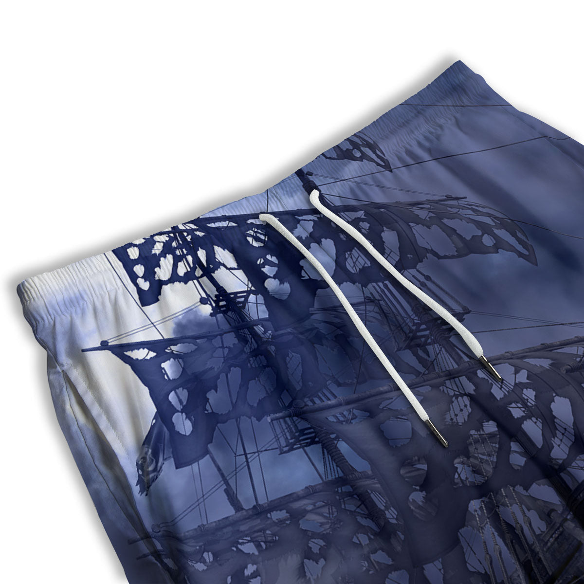 Flying Dutchman Ghost Pirate Ship Print Men's Athletic Shorts