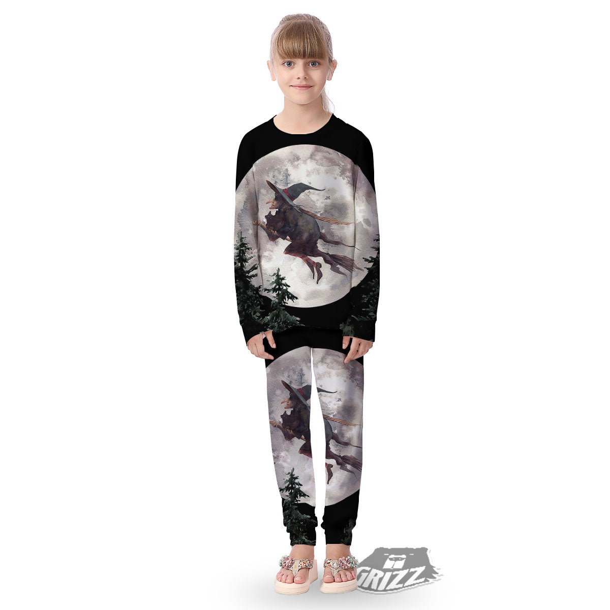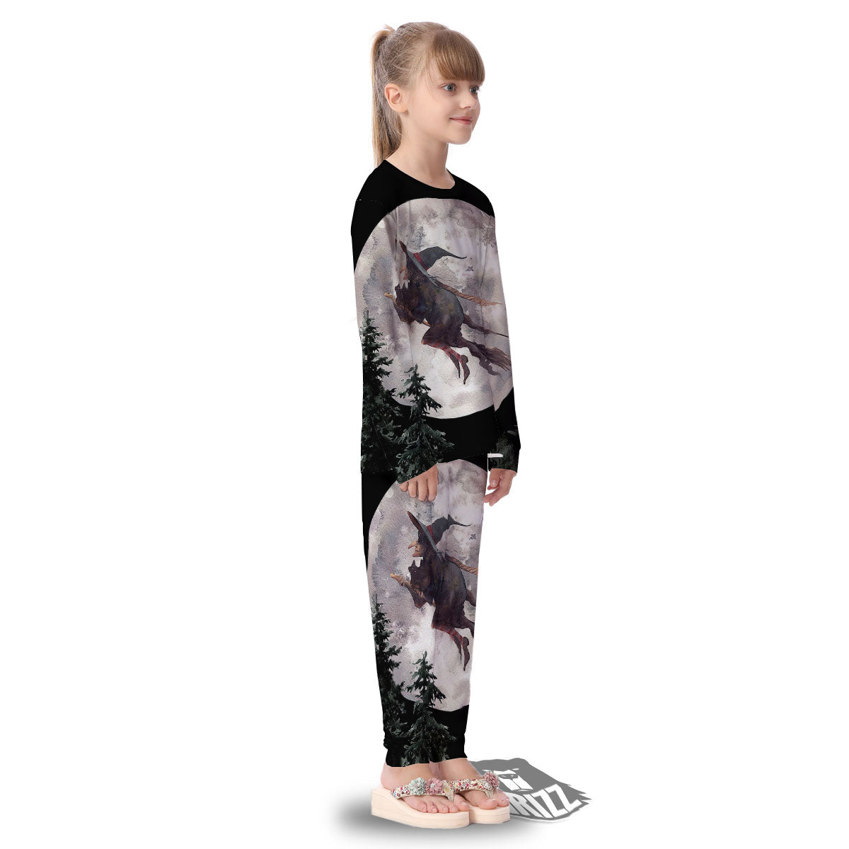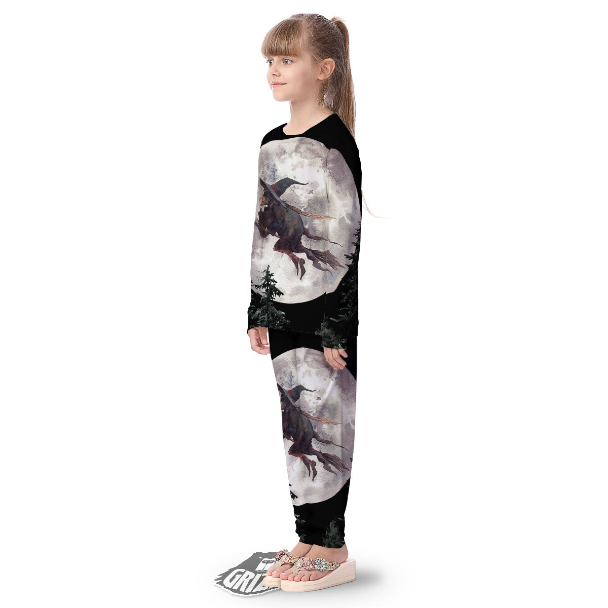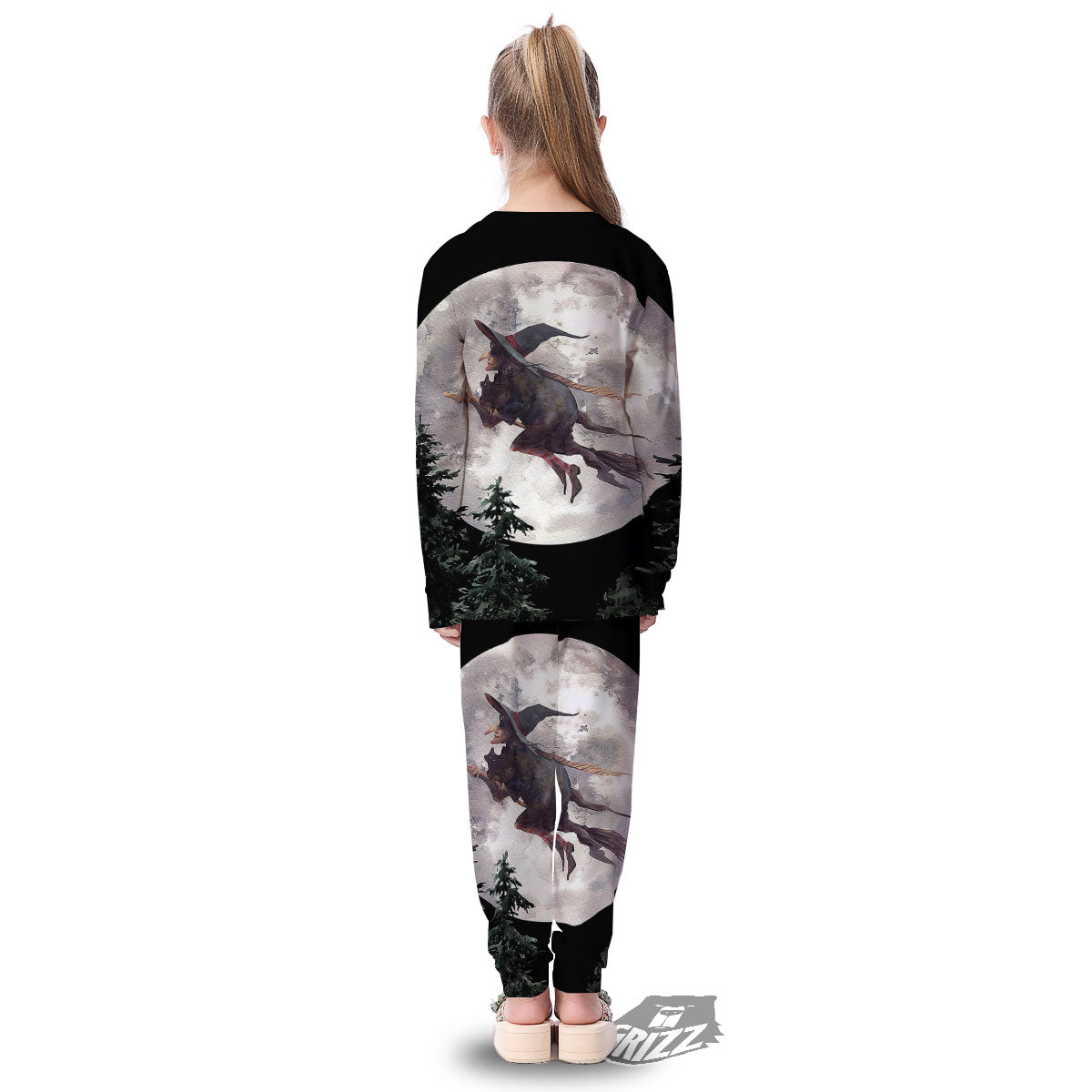 Flying Witch Halloween Full Moon Print Kid's Pajamas