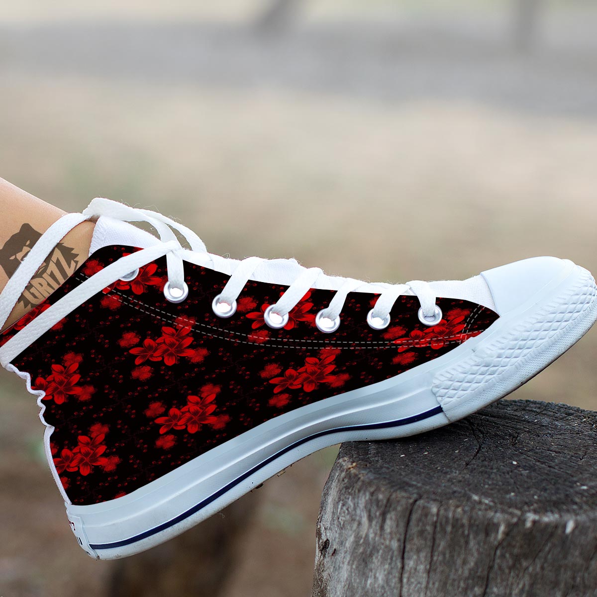 Looking for a unique shoes? Check out our Frangipani Black And Red Print Pattern White High Top Shoes at Grizzshopping. Our shoes are handcrafted to the highest quality standards that custom made for you