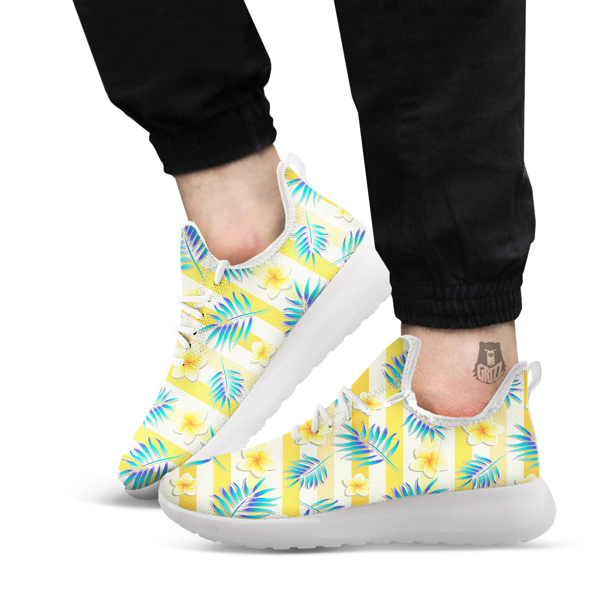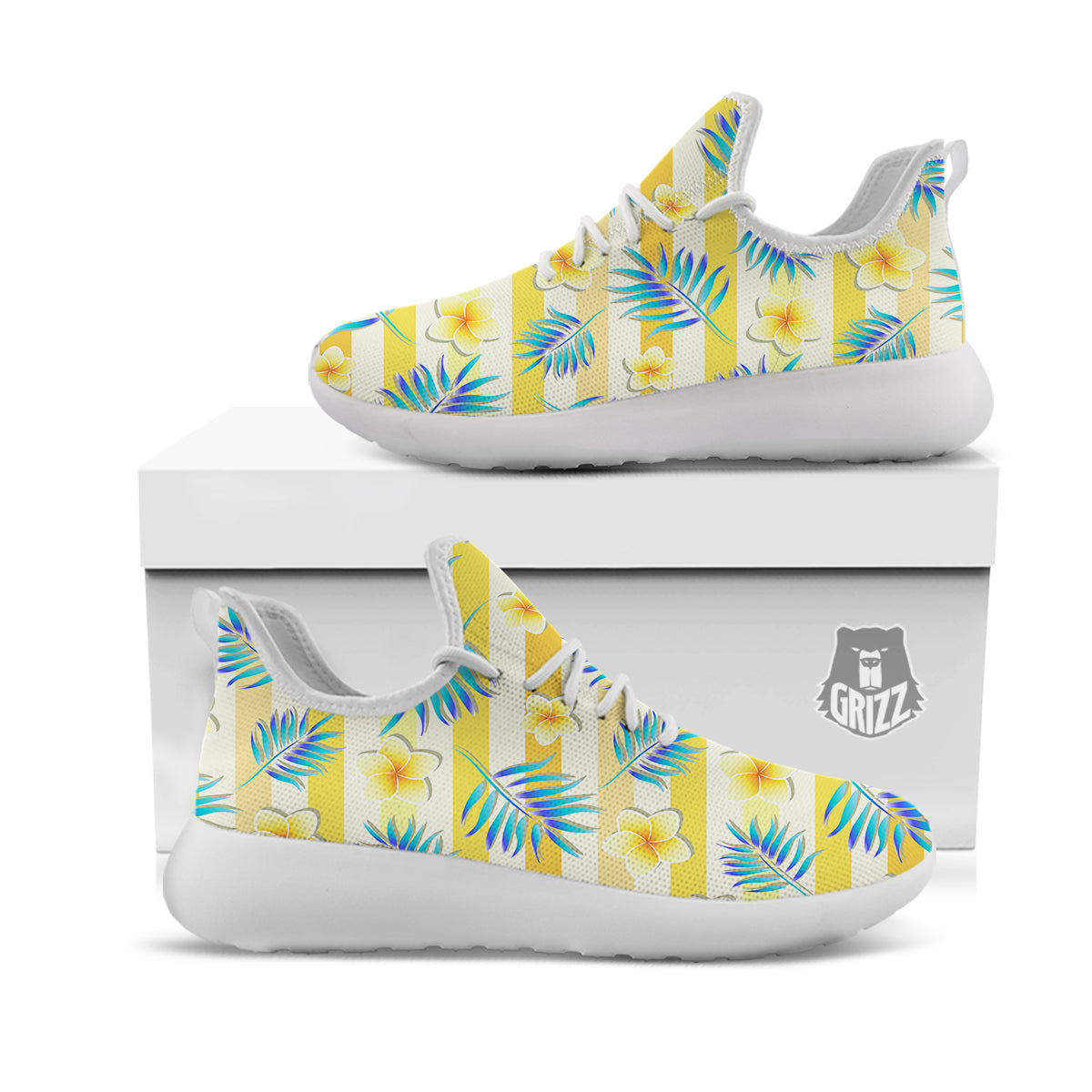 Frangipani Yellow Print Pattern White Athletic Shoes