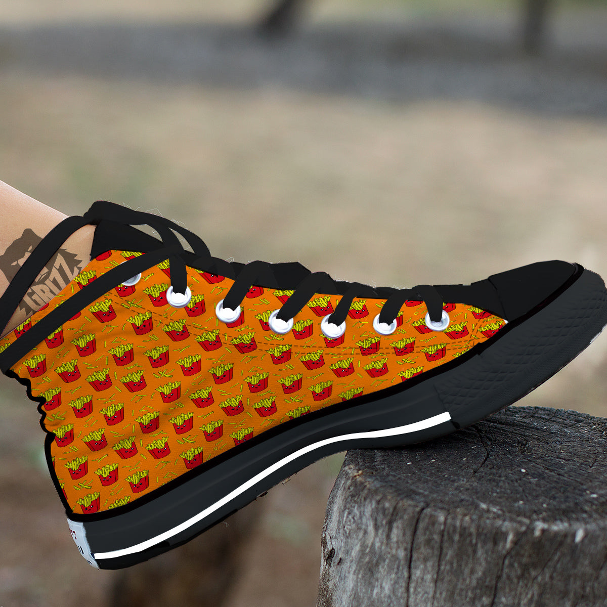 French Fries Cartoon Print Pattern Black High Top Shoes