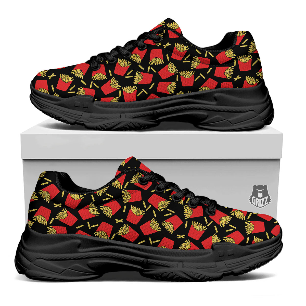 French Fries Doodle Print Pattern Black Chunky Shoes