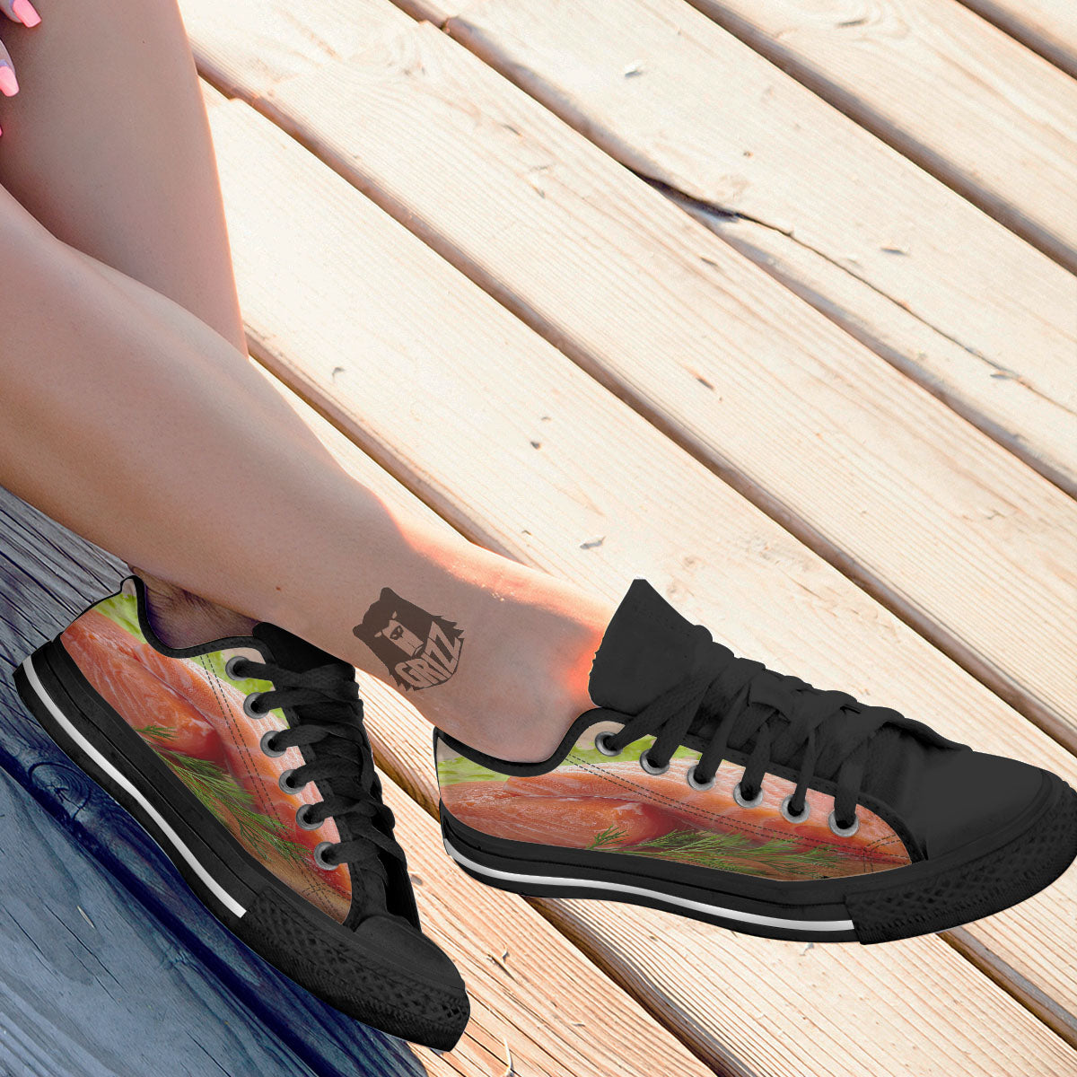 Looking for a unique low top shoes? Check out our Fresh Salmon Print Black Low Top Shoes at Grizzshopping. Our low top shoes are handcrafted to the highest quality standards that custom made for you