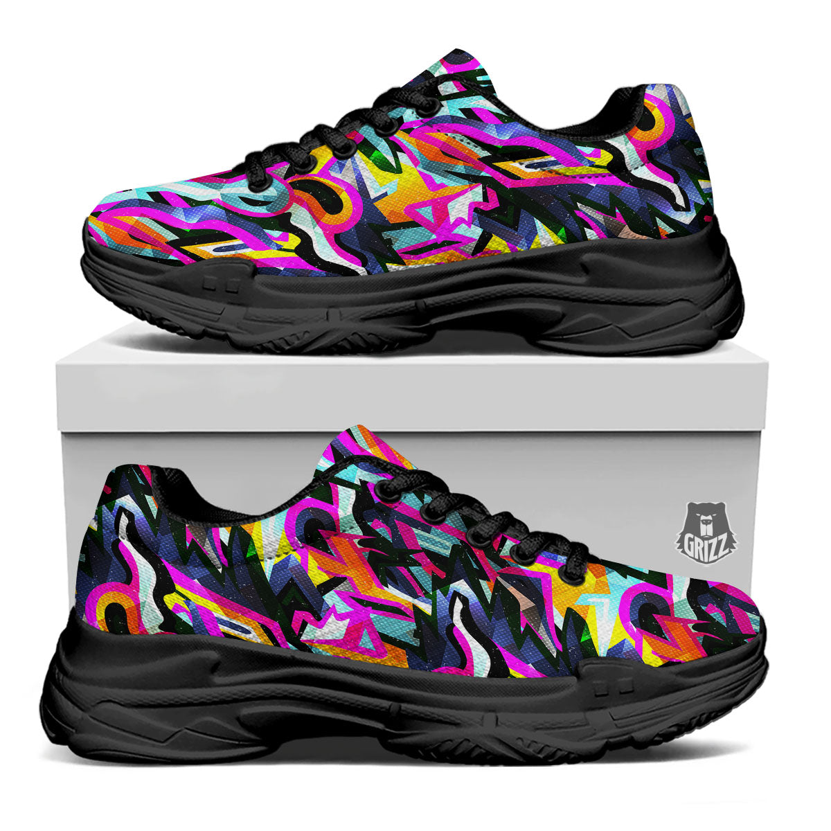 Looking for unique chunky shoes? Check out our Funky Psychedelic Print Pattern Black Chunky Shoes at Grizzshopping. Our chunky shoes are handcrafted to the highest quality standards that custom made for you