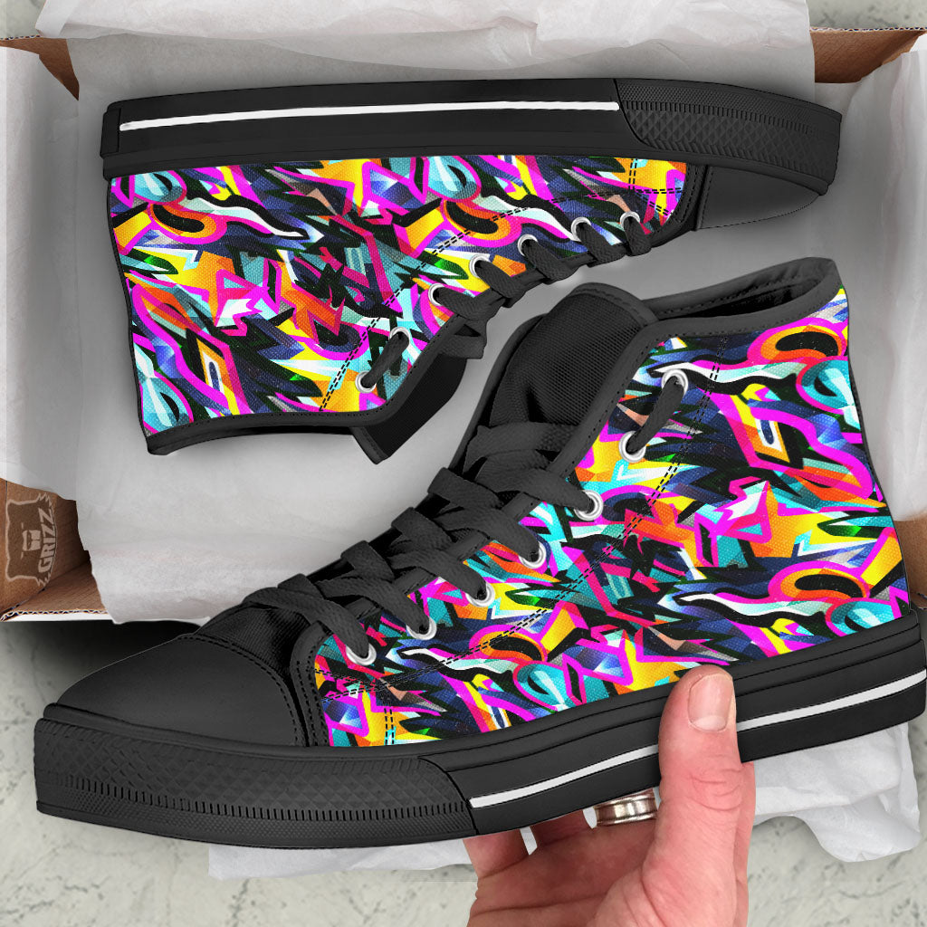 Funky Psychedelic Print Pattern Black High Top Shoes