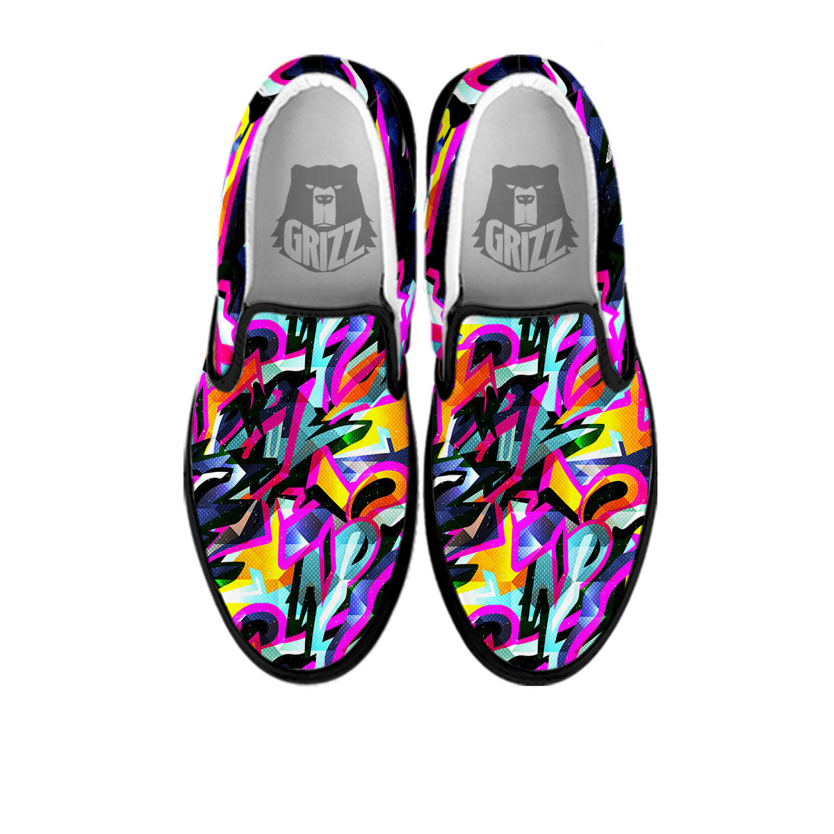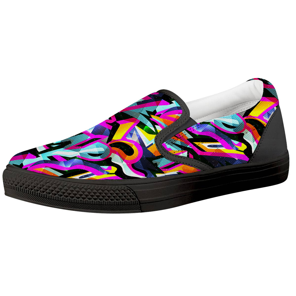 Funky Psychedelic Print Pattern Black Slip On Shoes