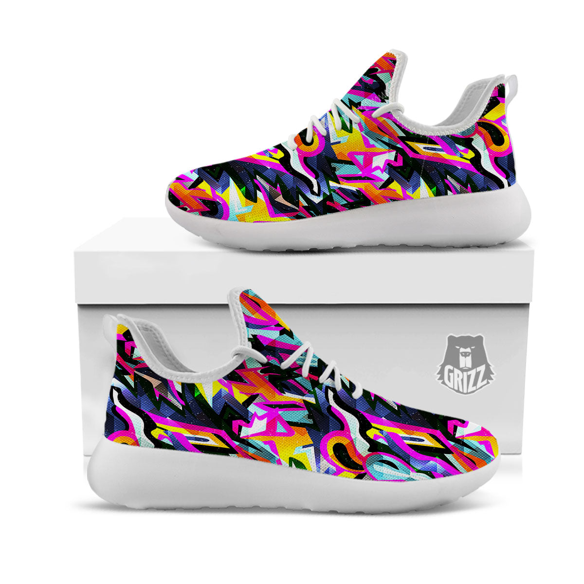 Funky Psychedelic Print Pattern White Athletic Shoes