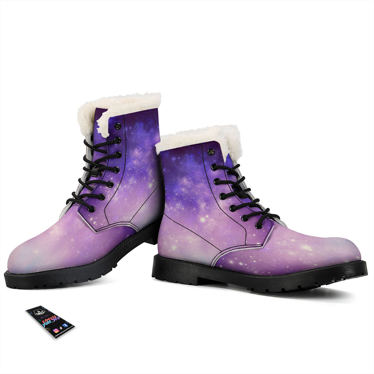 Galaxy Space Purple Stardust Cloud Print Winter Boots
