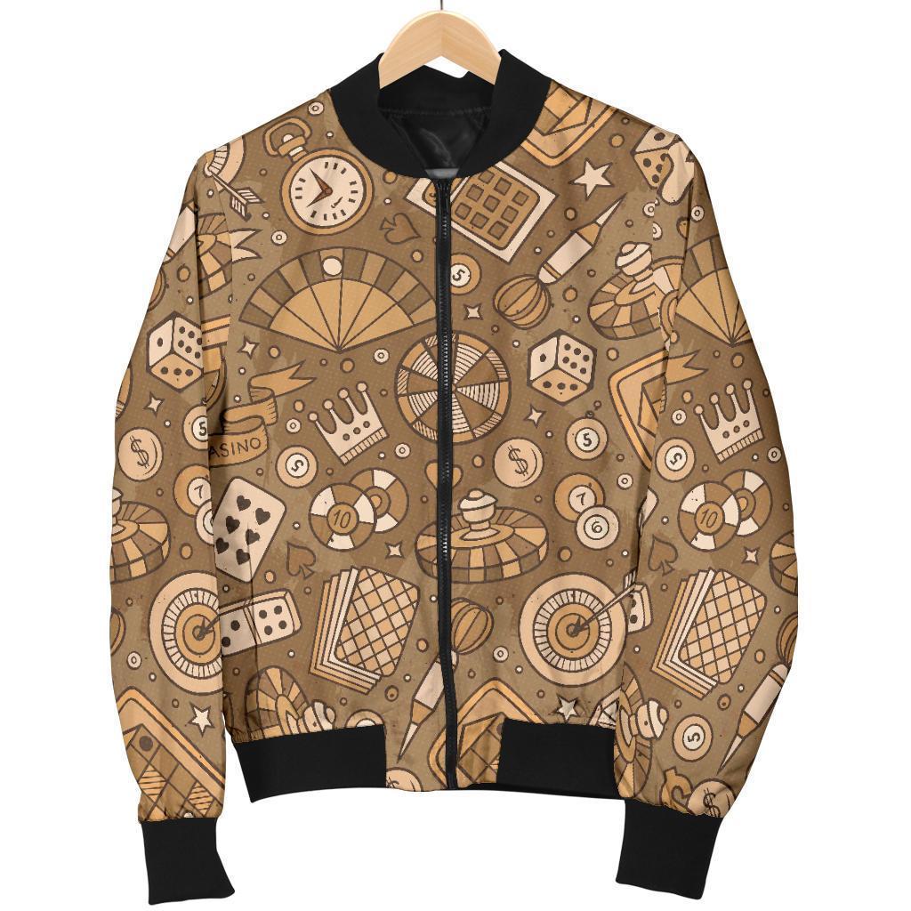 Gambling Poker Pattern Print Women Casual Bomber Jacket