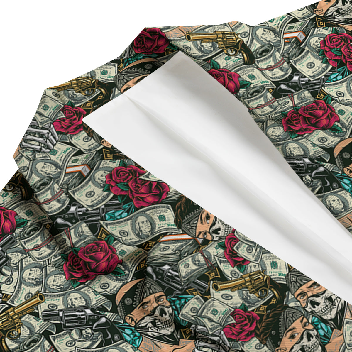 Gang Gun And Money Vintage Print Pattern Men's Blazer