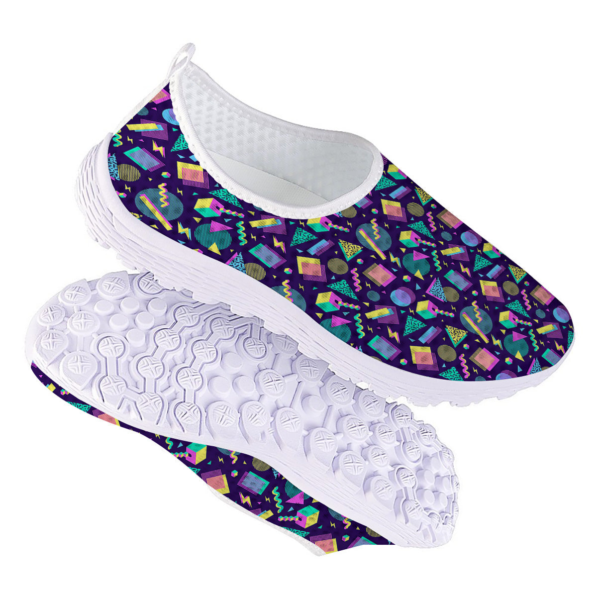 Geometric Shapes Neon Print Pattern Nurse Shoes