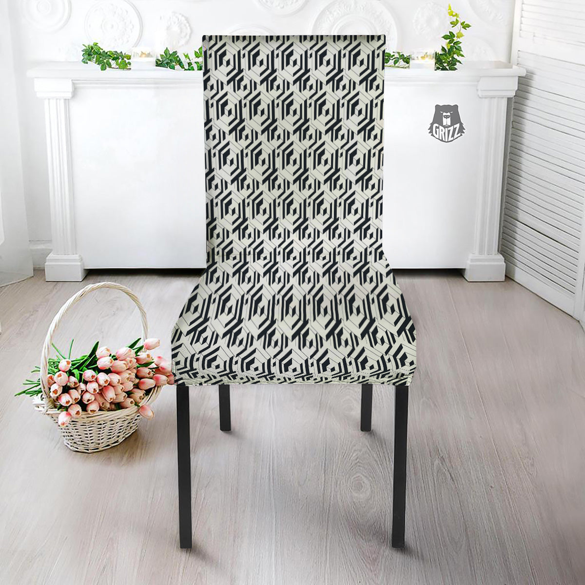 Geometric Simple Black And White Print Pattern Dining Chair Slipcover