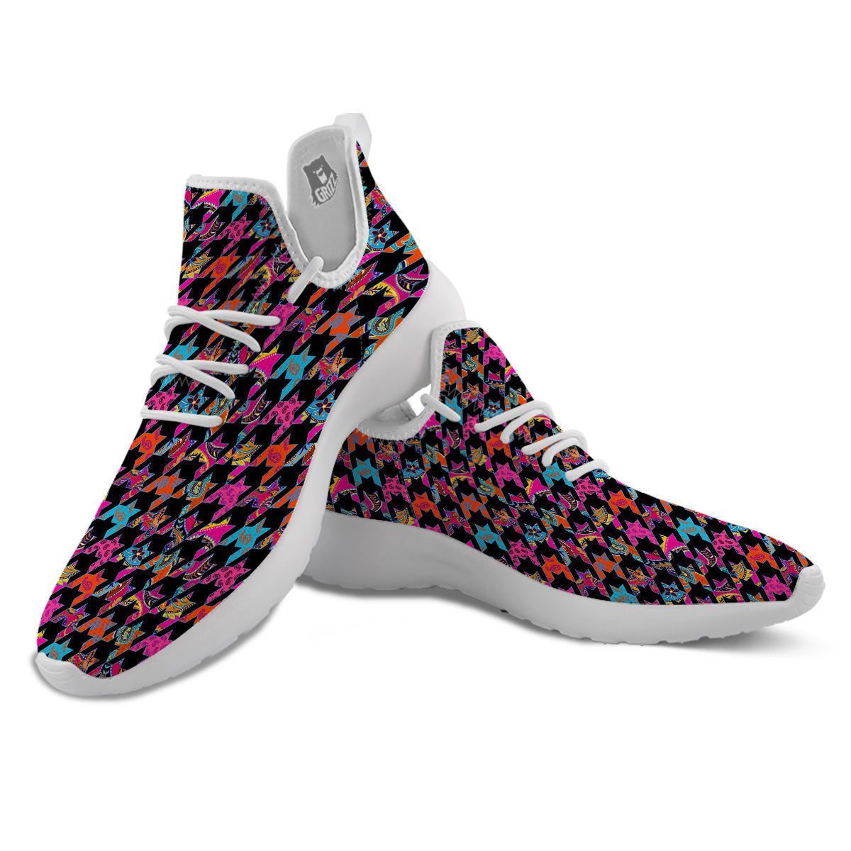Geometrical Houndstooth And Paisley Print Pattern White Athletic Shoes