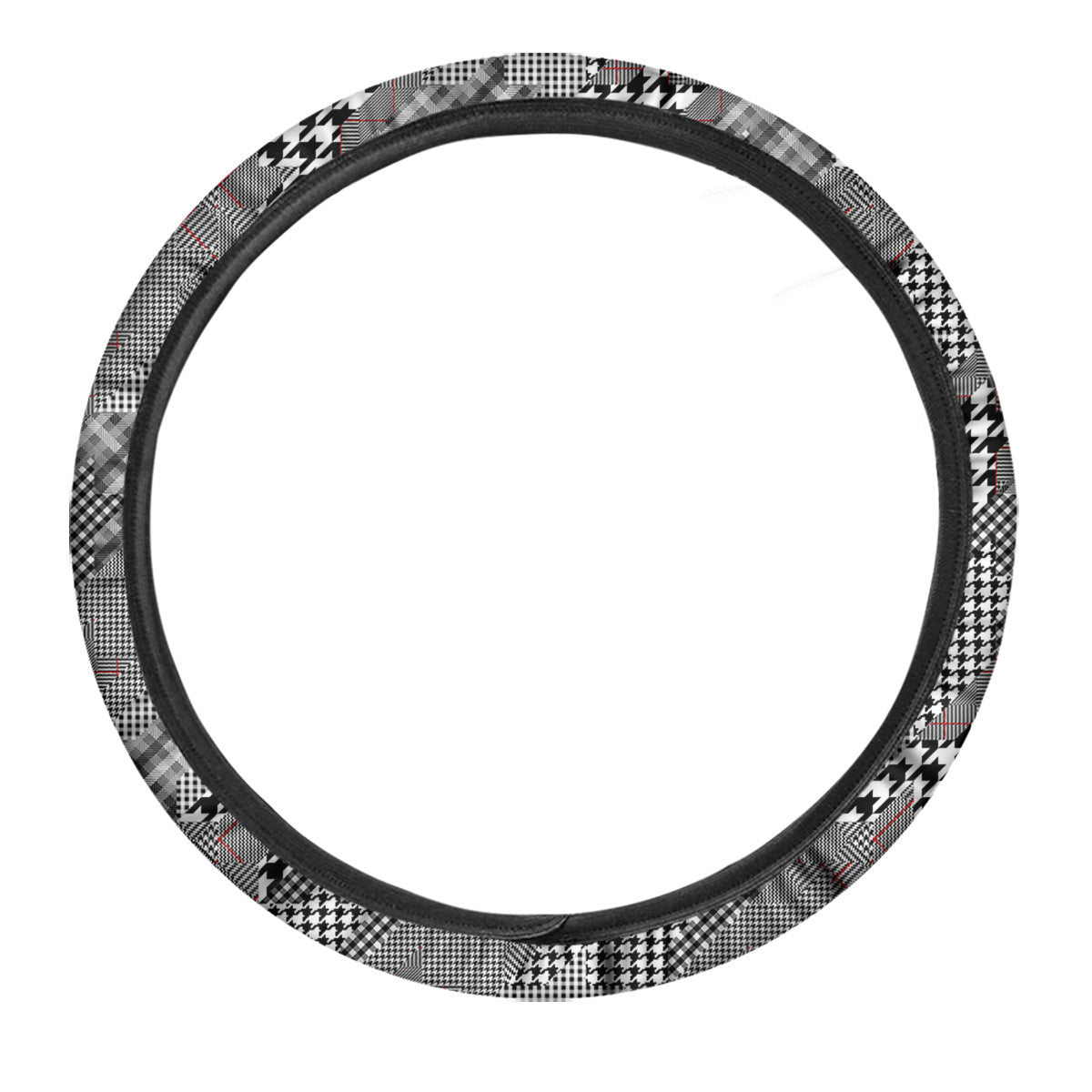 Geometrical Houndstooth Patchwork Print Pattern Car Steering Wheel Cover