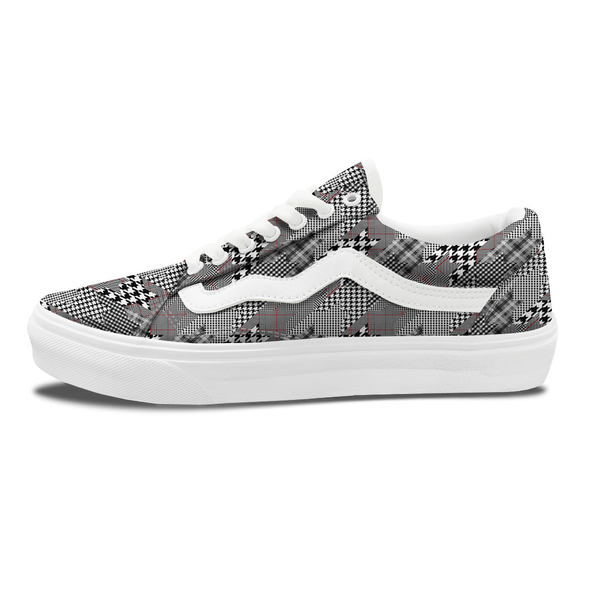 Geometrical Houndstooth Patchwork Print Pattern Skate Shoes