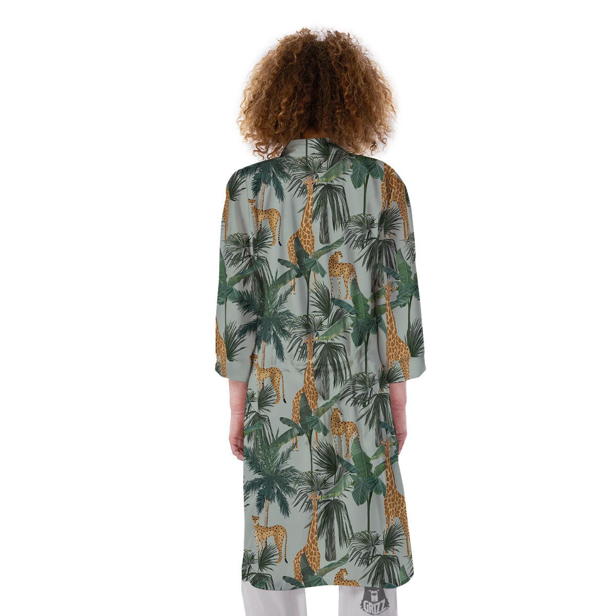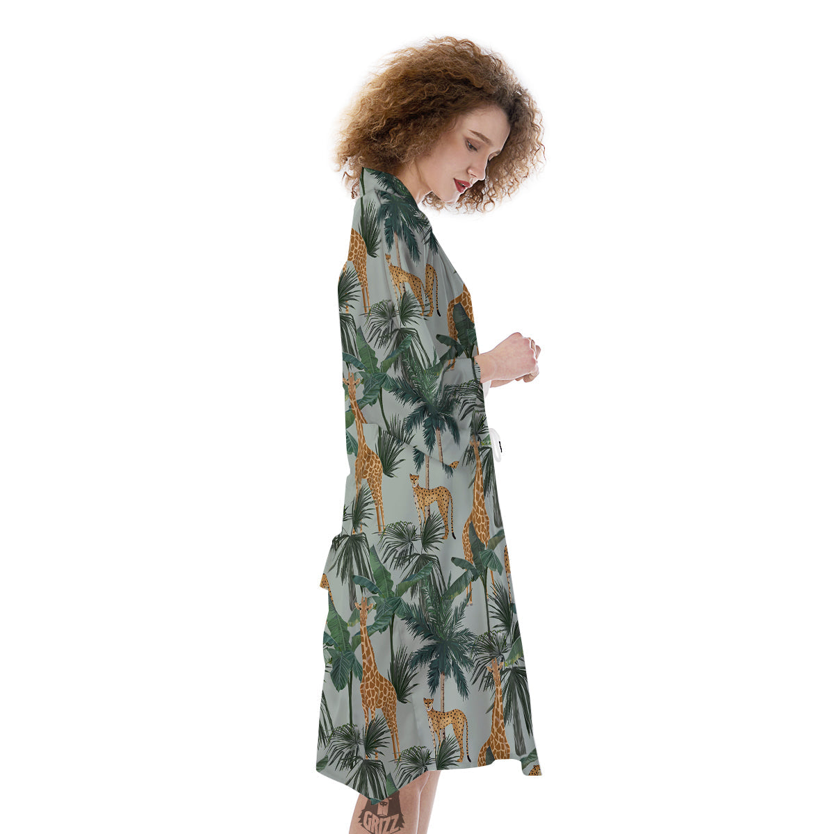 Giraffe And Leopard Vintage Print Pattern Kimono