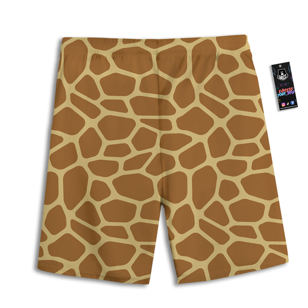 Giraffe Brown Yellow Print Pattern Men's Athletic Shorts
