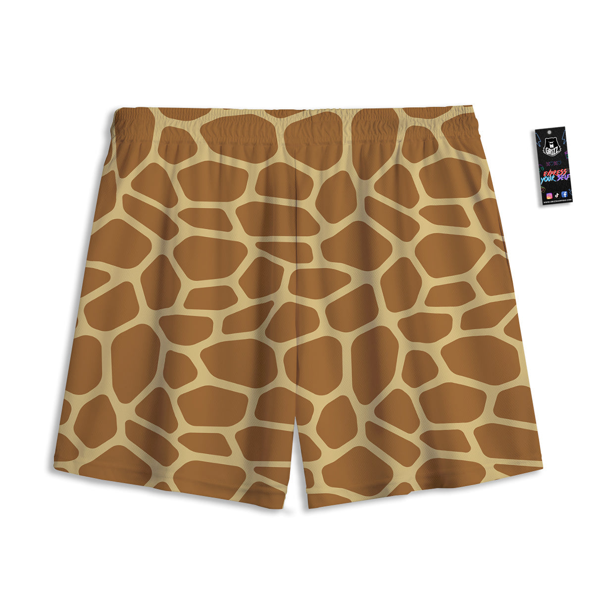 Giraffe Brown Yellow Print Pattern Mesh Shorts