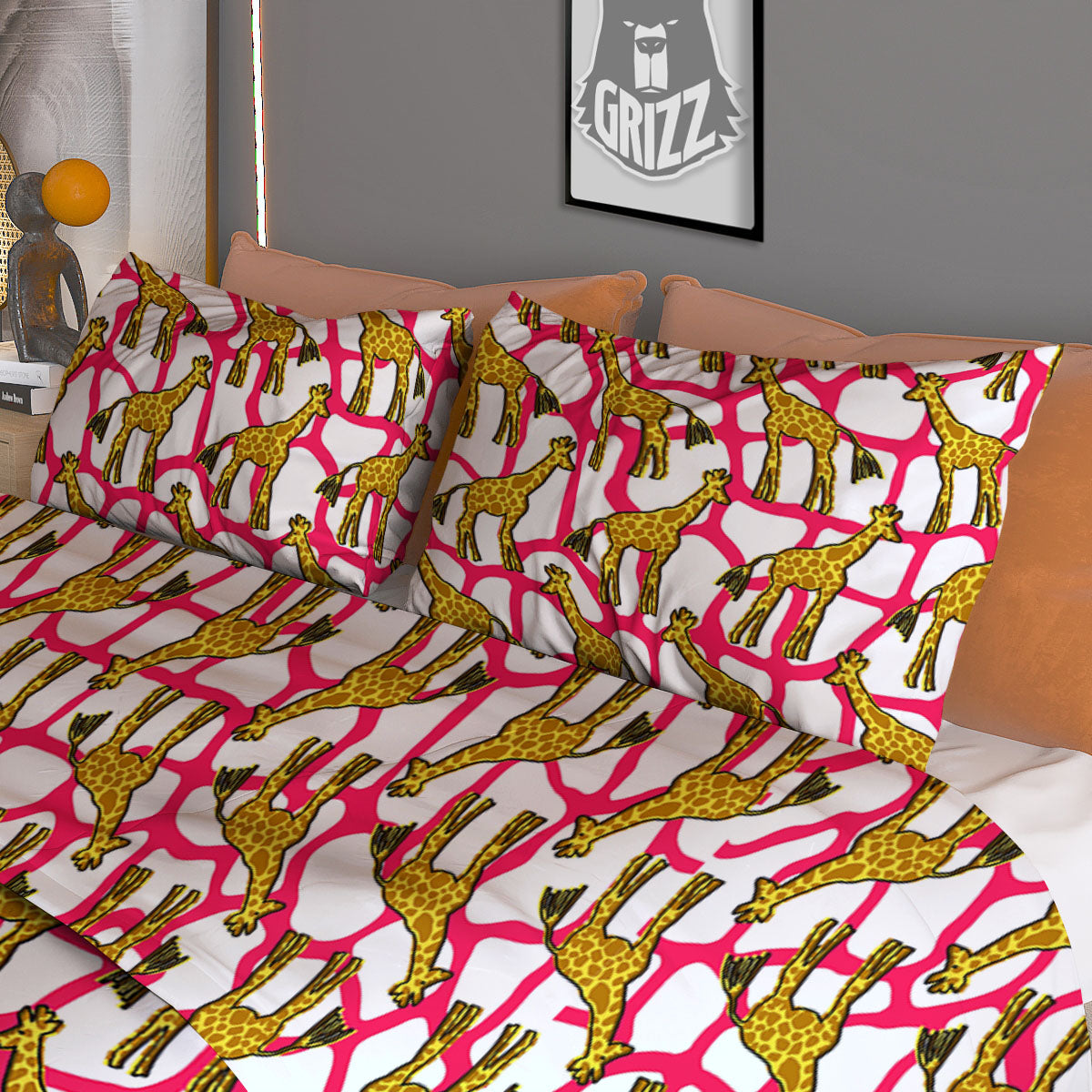 Giraffe Yellow And Pink Print Pattern Duvet Cover Bedding Set