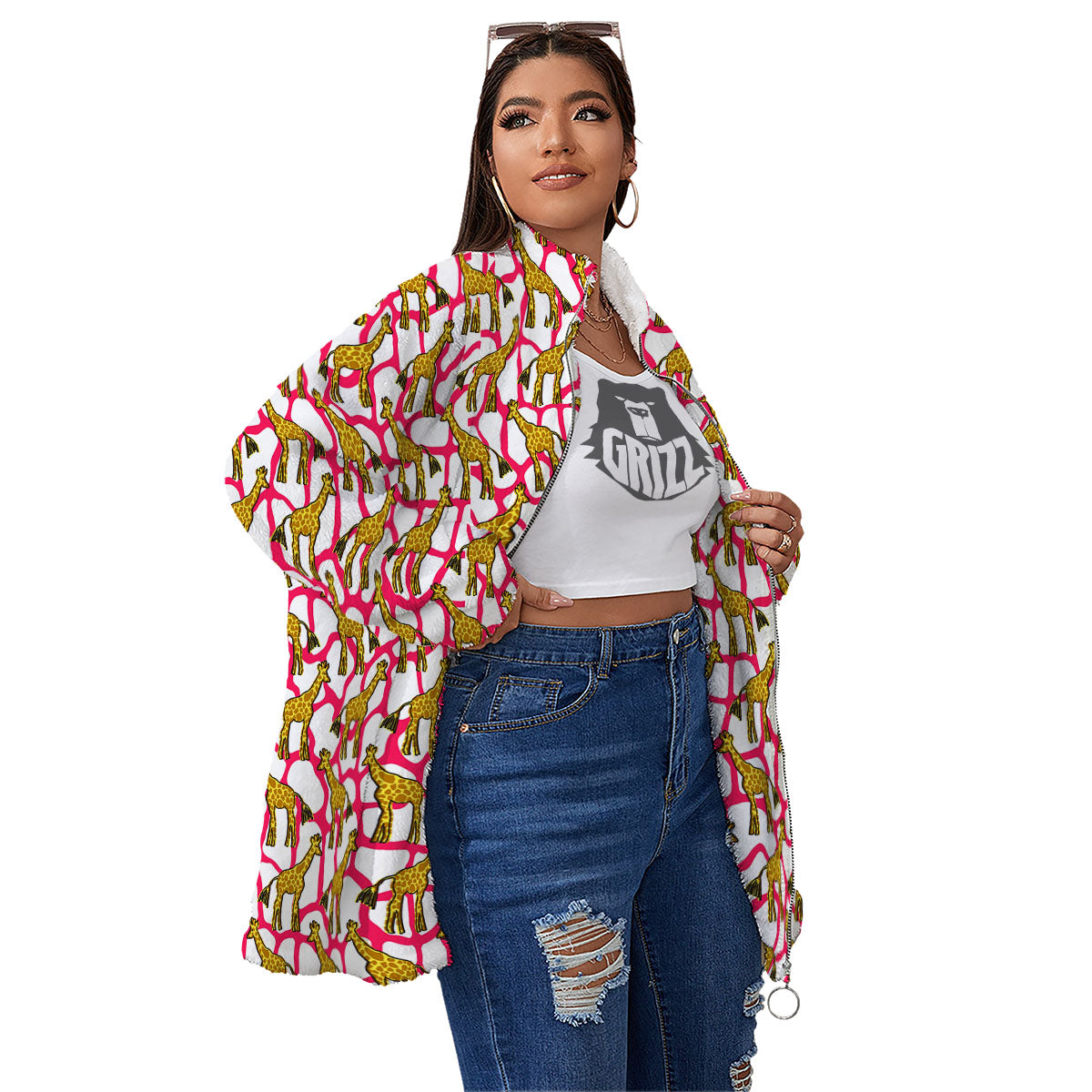 Giraffe Yellow And Pink Print Pattern Women's Sherpa Jacket