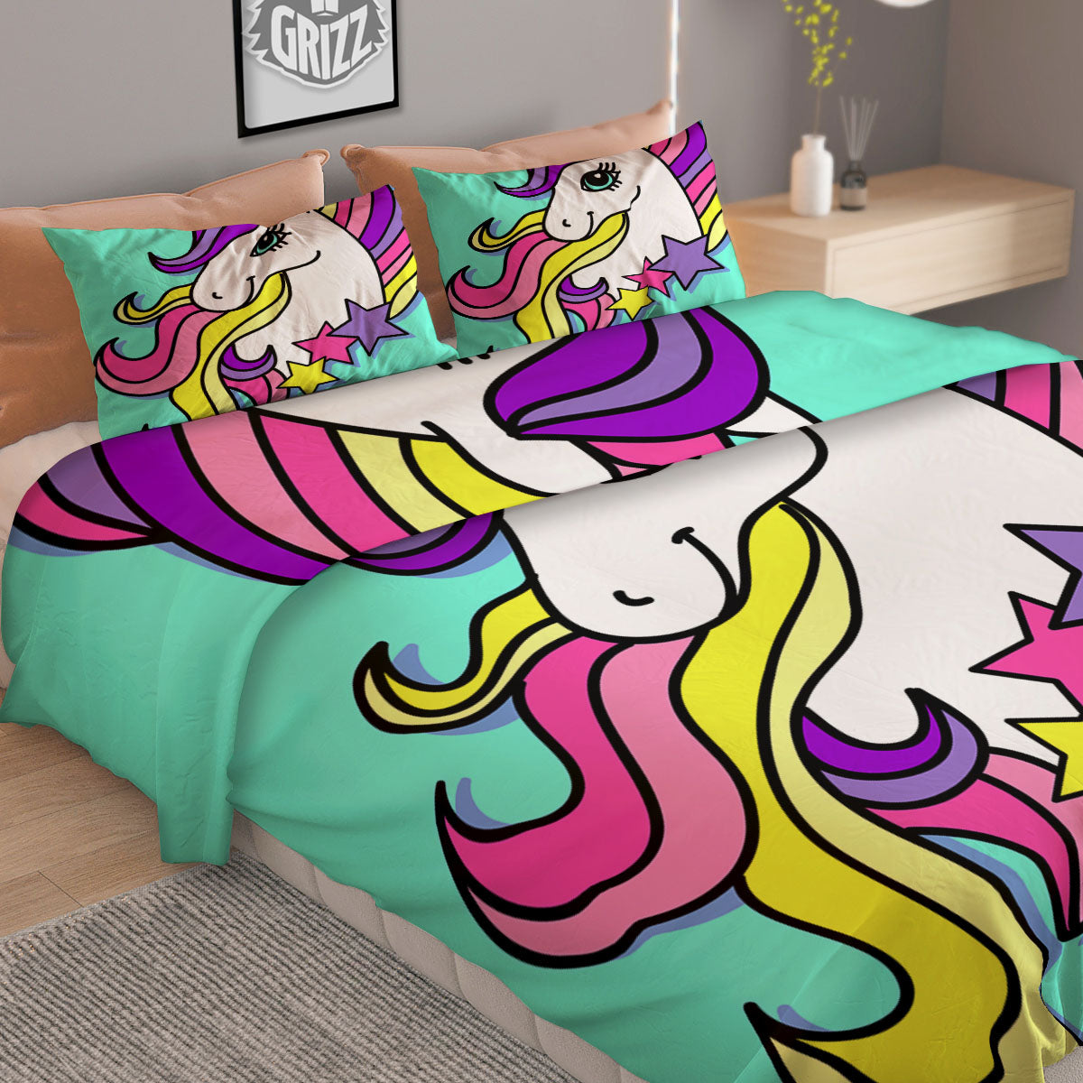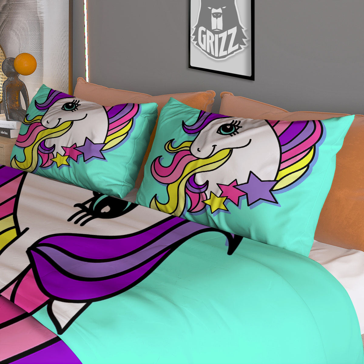Girly Unicorn Teal Print Duvet Cover Bedding Set
