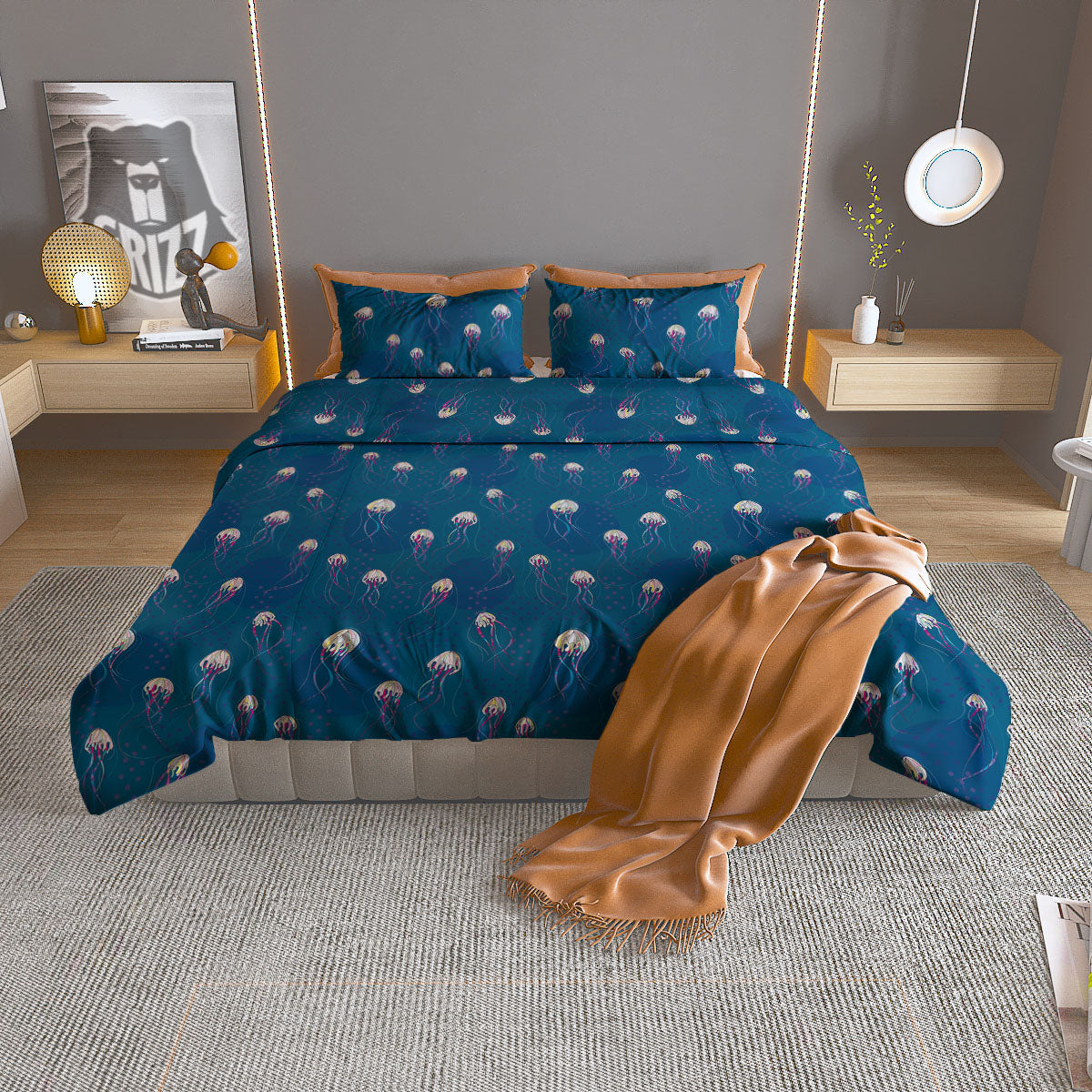 Glowing Jellyfish Print Pattern Duvet Cover Bedding Set