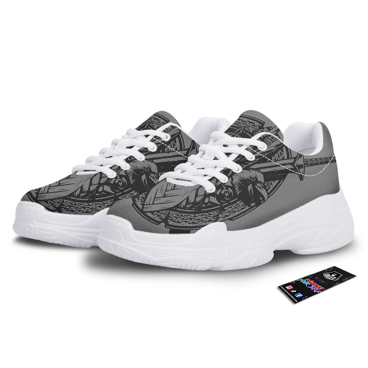 Looking for unique chunky shoes? Check out our God Odin Grey Color Print White Chunky Shoes at Grizzshopping. Our chunky shoes are handcrafted to the highest quality standards that custom made for you