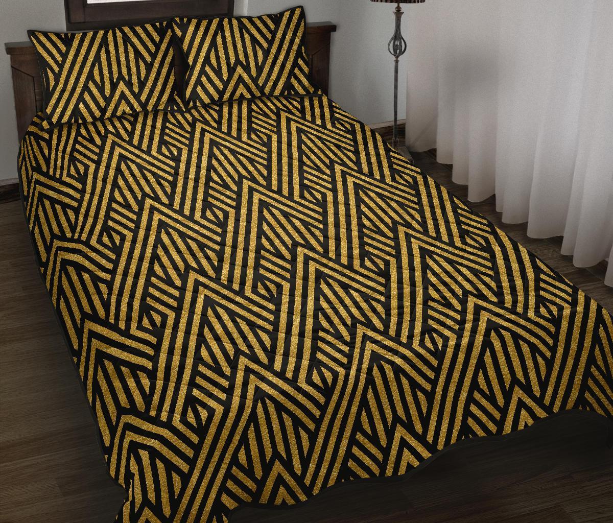 Gold Glitter Pattern Print Bed Set Quilt