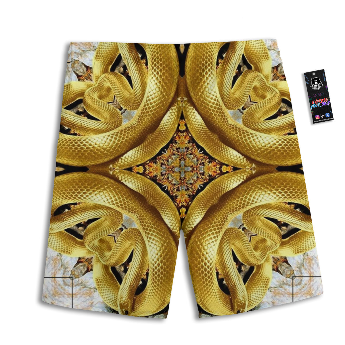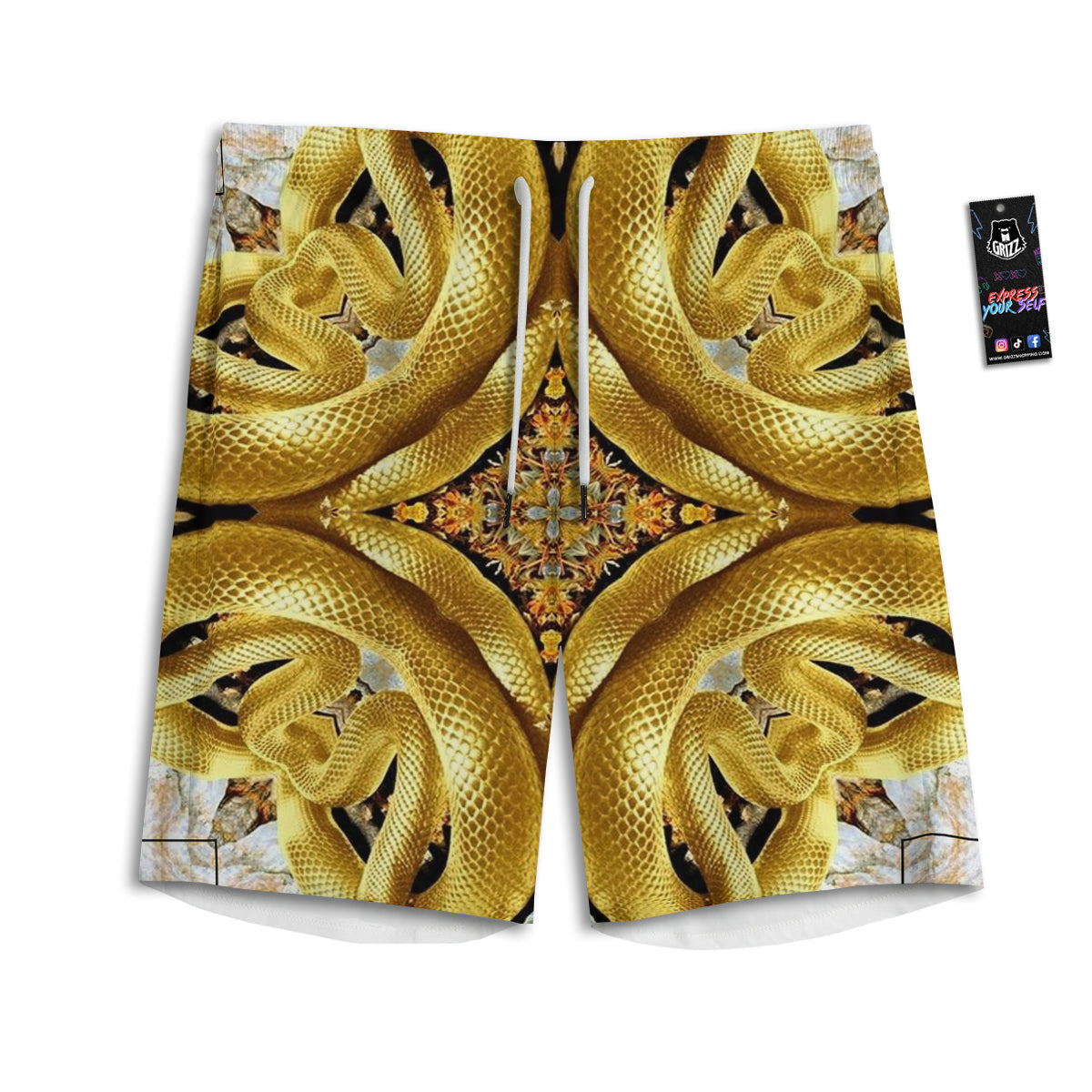 Golden Snake Kaleidoscope Print Men's Athletic Shorts
