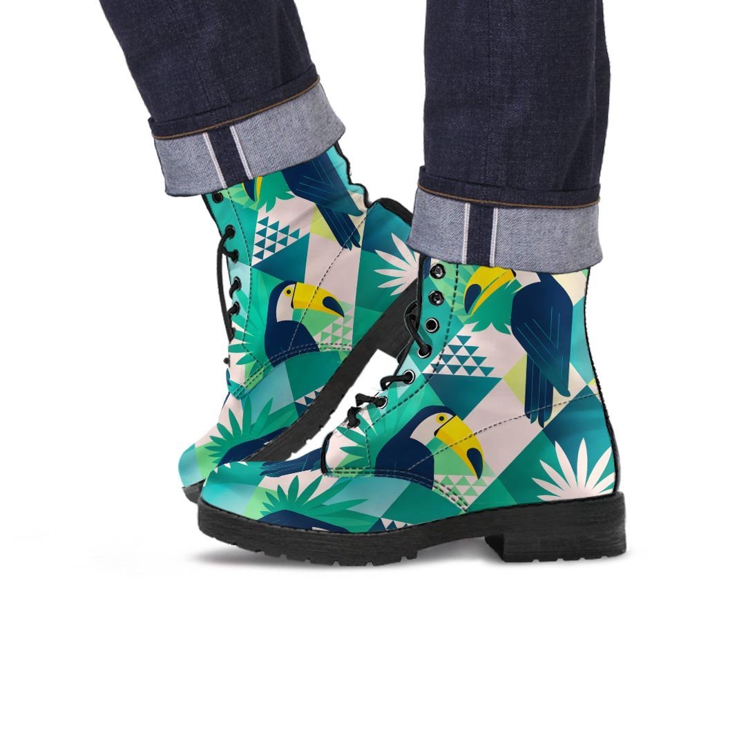 - Features vegan-friendly leather with a double-sided print and rounded toe construction.