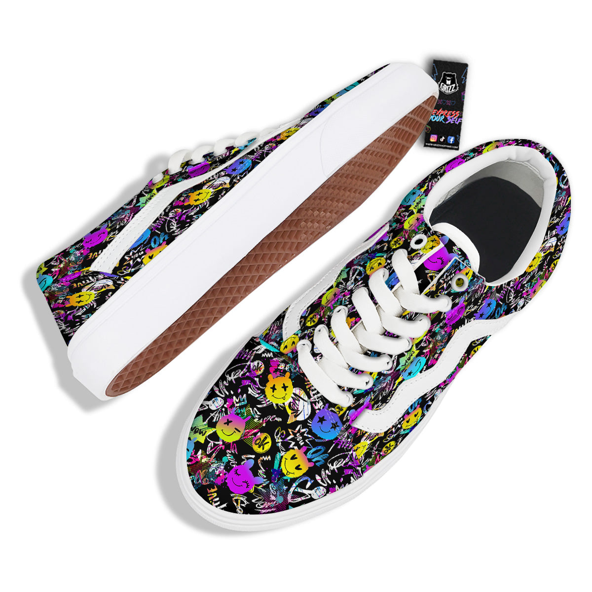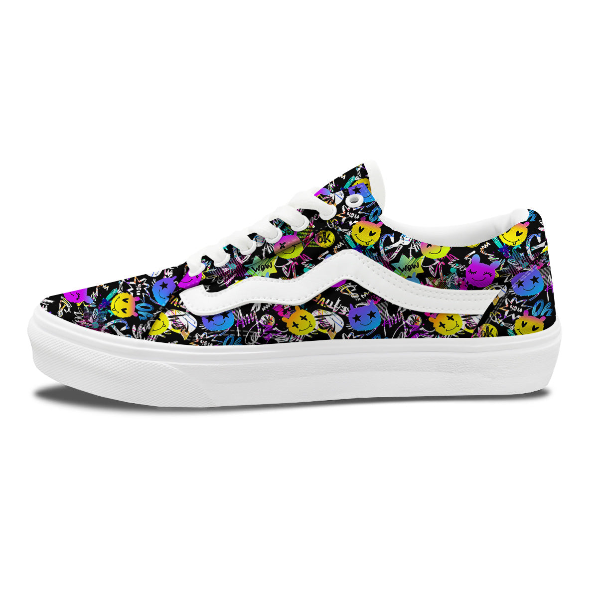 Graffiti Colorful Emoji Faces Print Pattern Skate Shoes