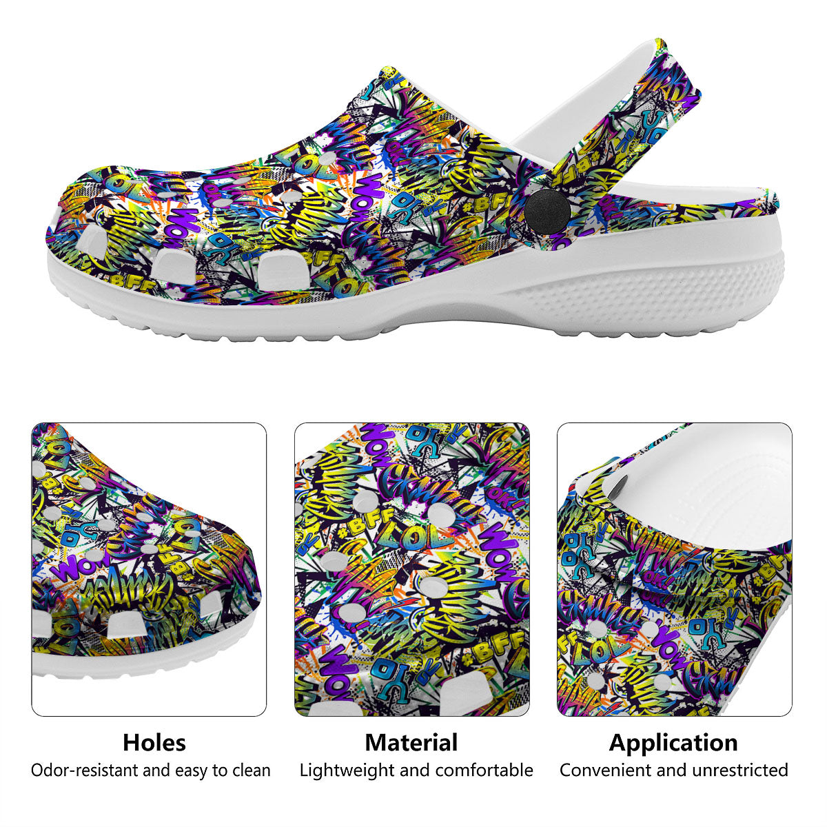 Looking for unique clog? Check out our Graffiti Colorful Print Pattern Clog at Grizzshopping. Our clog are handcrafted to the highest quality standards and custom-made for you