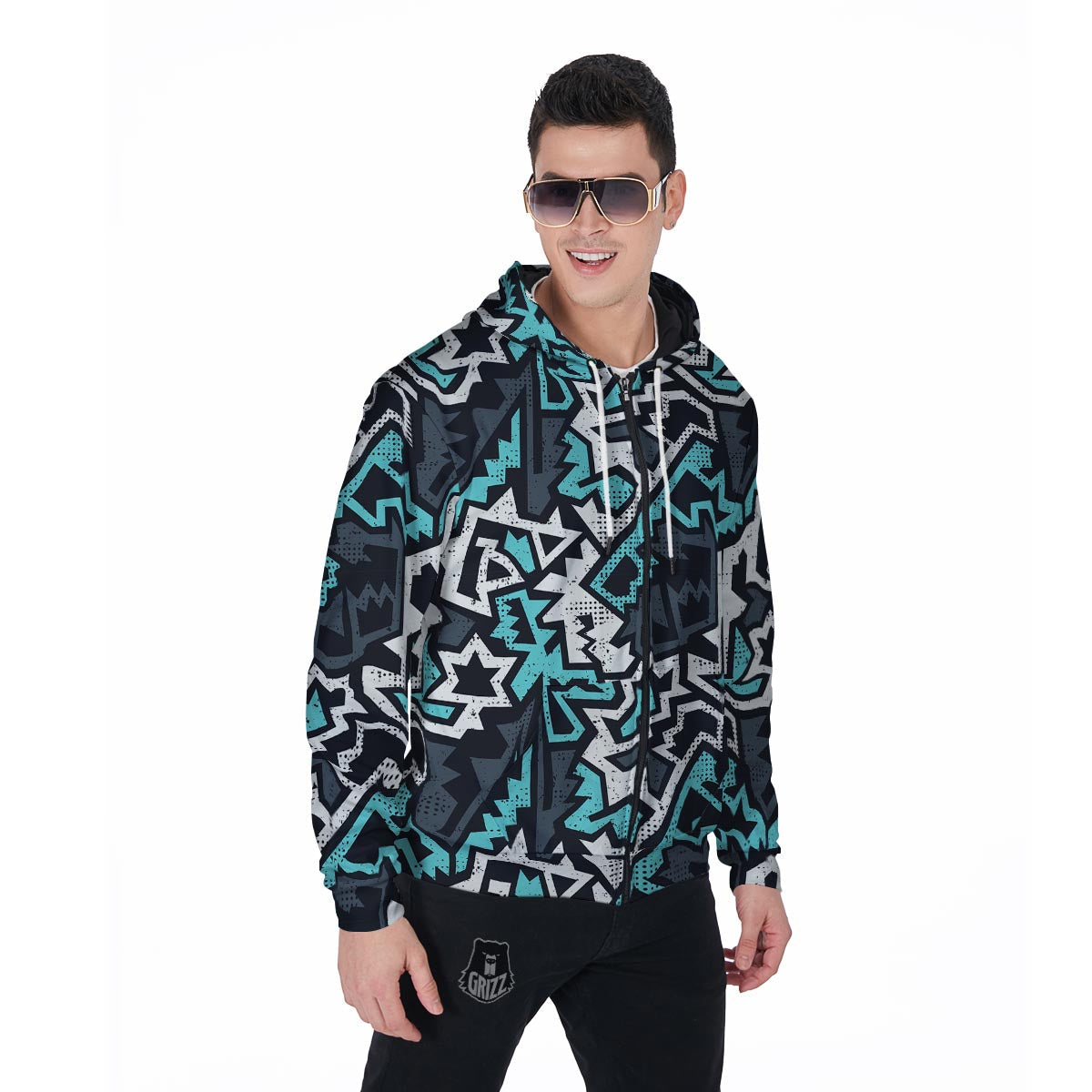 Graffiti Geometric Print Men's Zip Up Hoodie