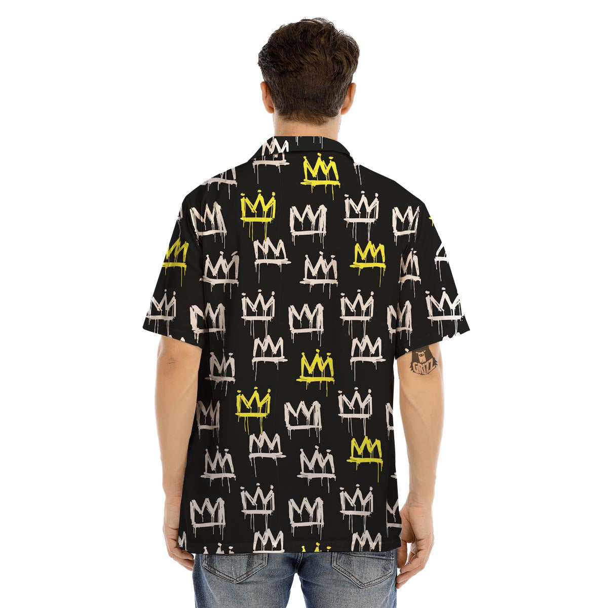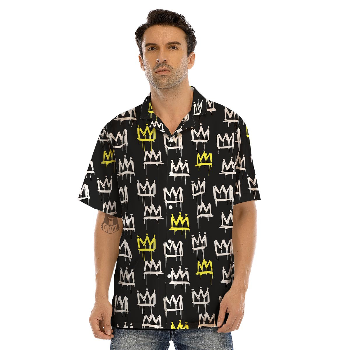 Graffiti Hiphop White And Yellow Crown Print Men’s Hawaiian Shirt