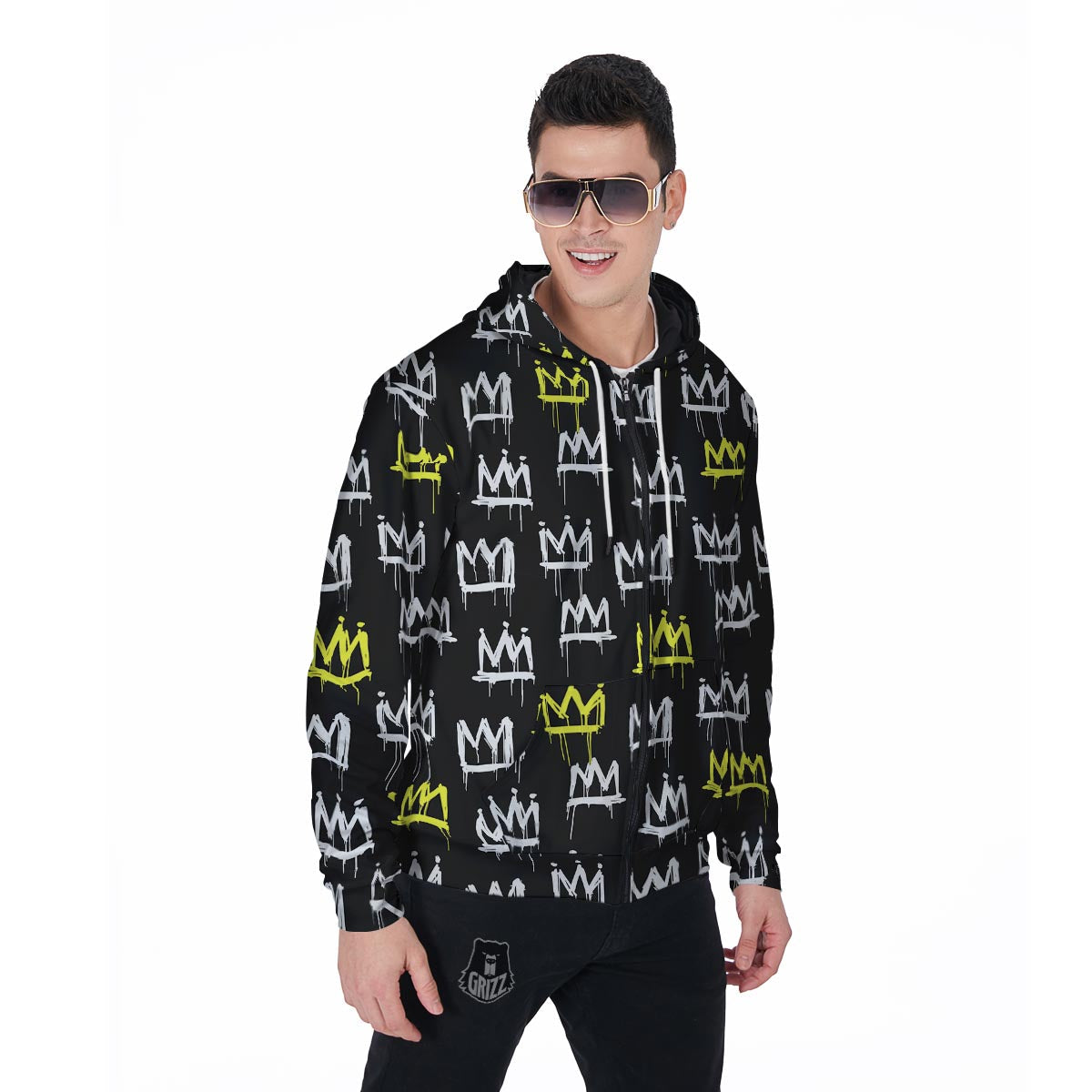 Looking for a unique Zip Up Hoodie? Check out our Graffiti Hiphop White And Yellow Crown Print Men's Zip Up Hoodie at Grizzshopping. Our Zip Up Hoodie are handcrafted to the highest quality standards that custom made for you