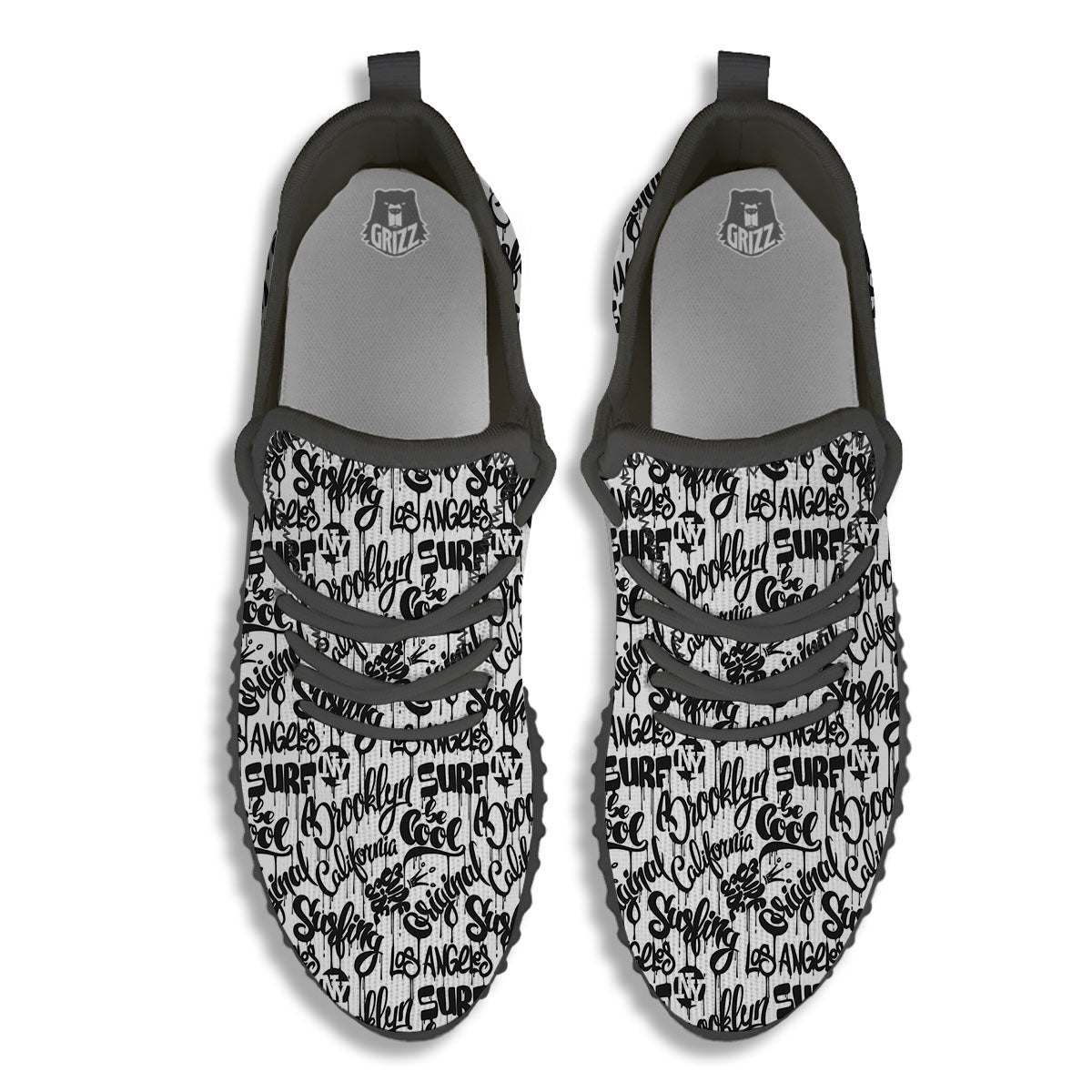 Graffiti White And Black Print Pattern Black Walking Shoes