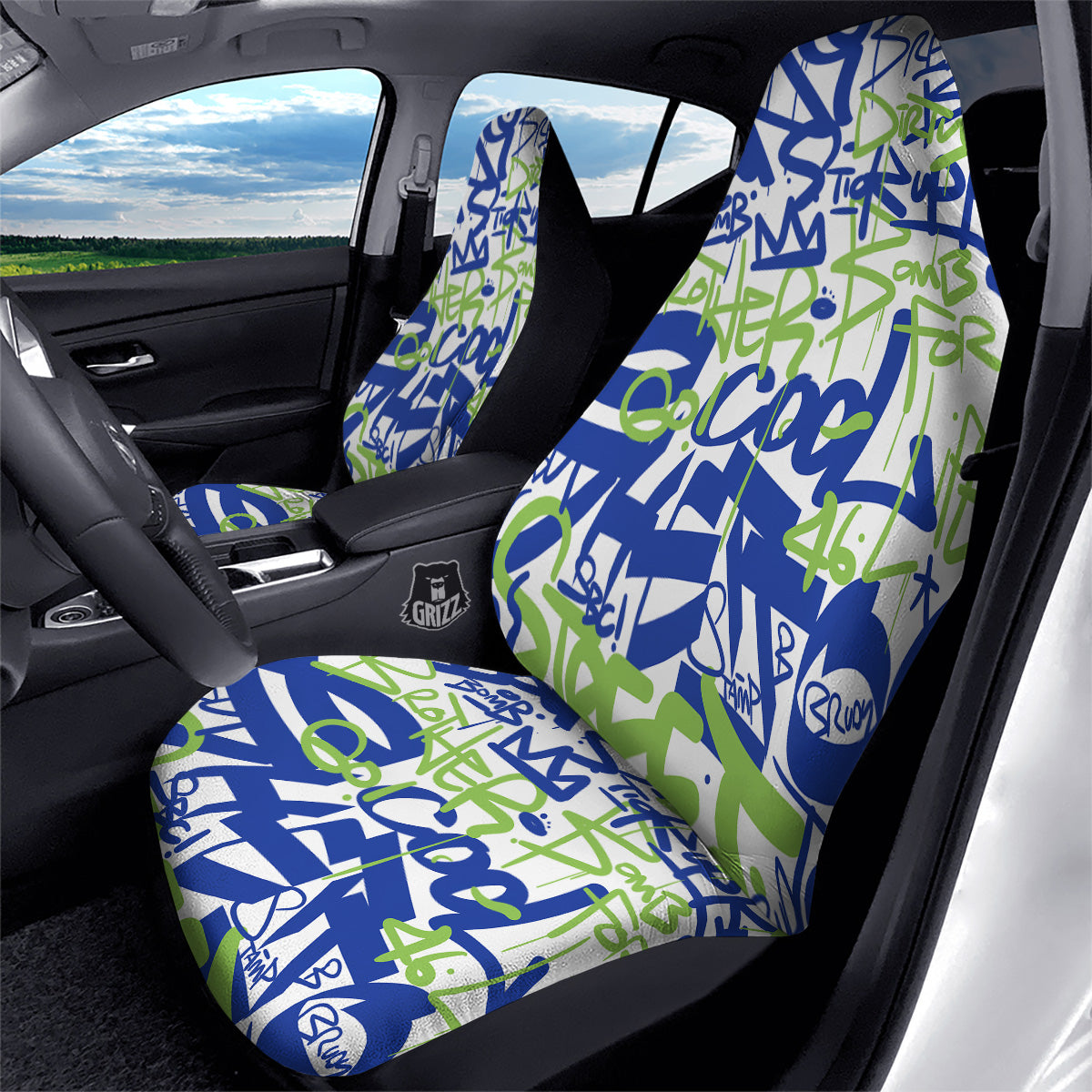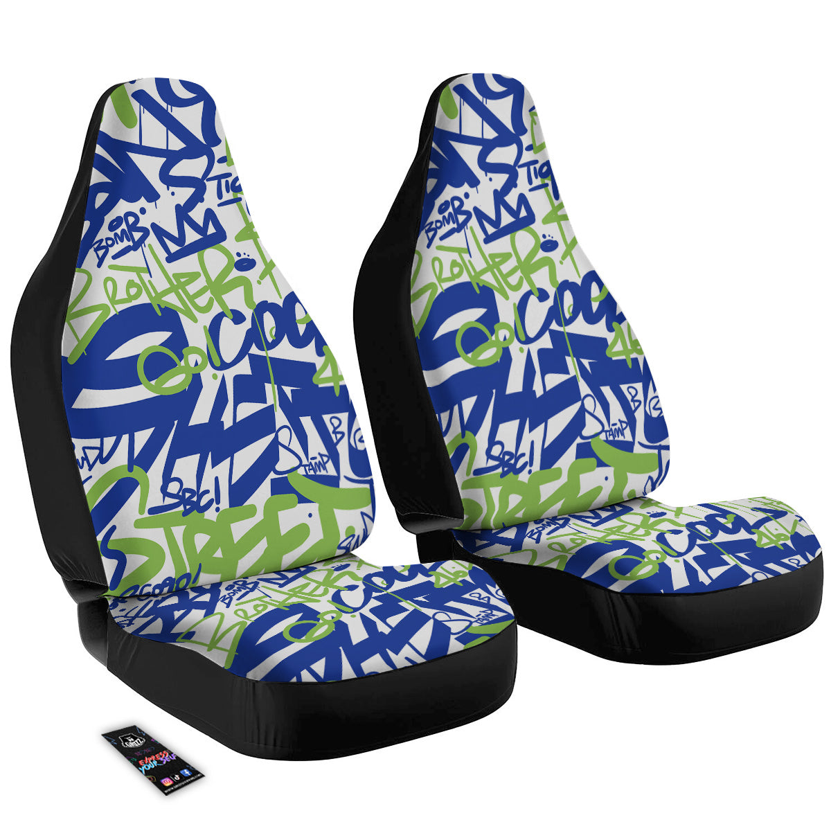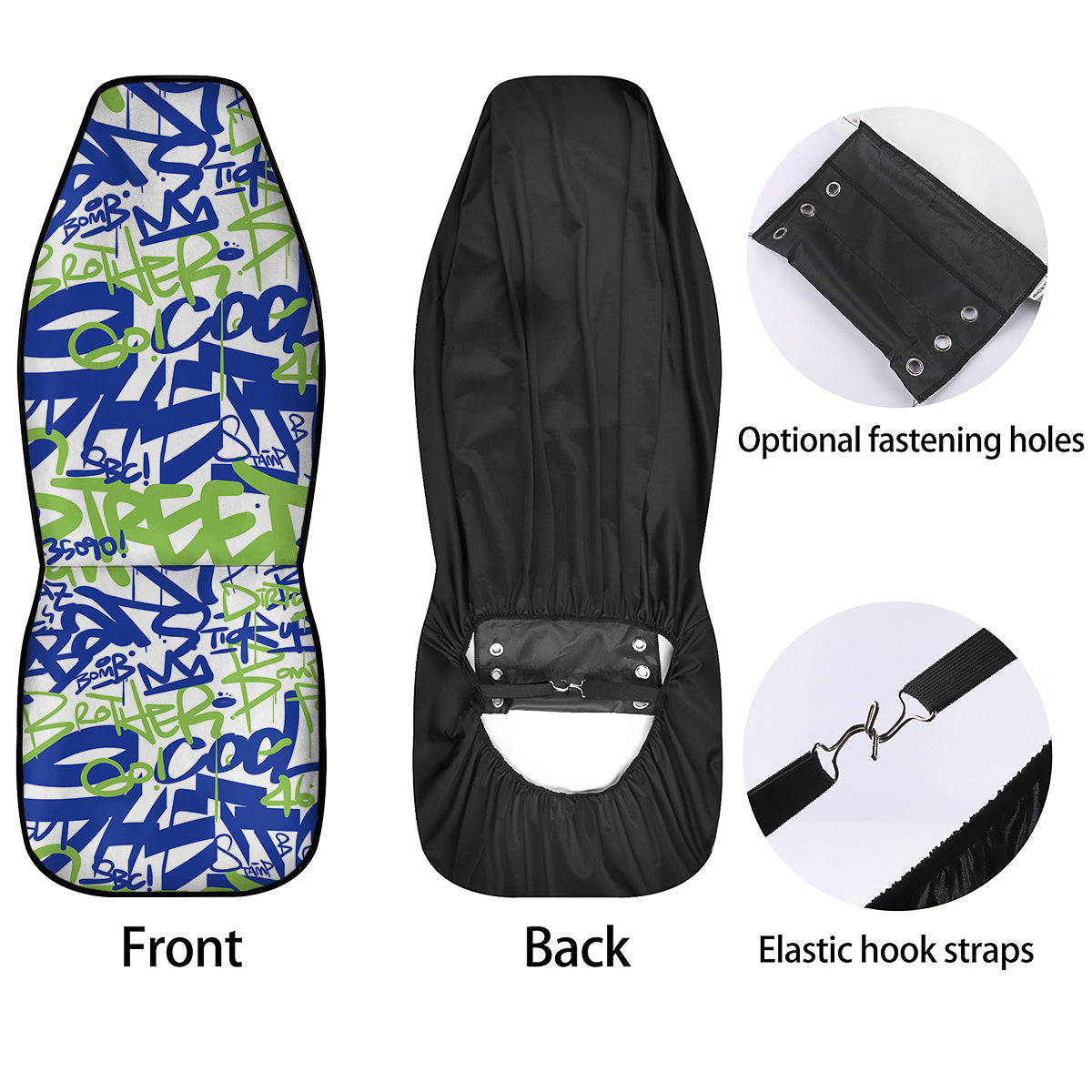 Green Blue Urban Graffiti Text Print Pattern Car Seat Covers