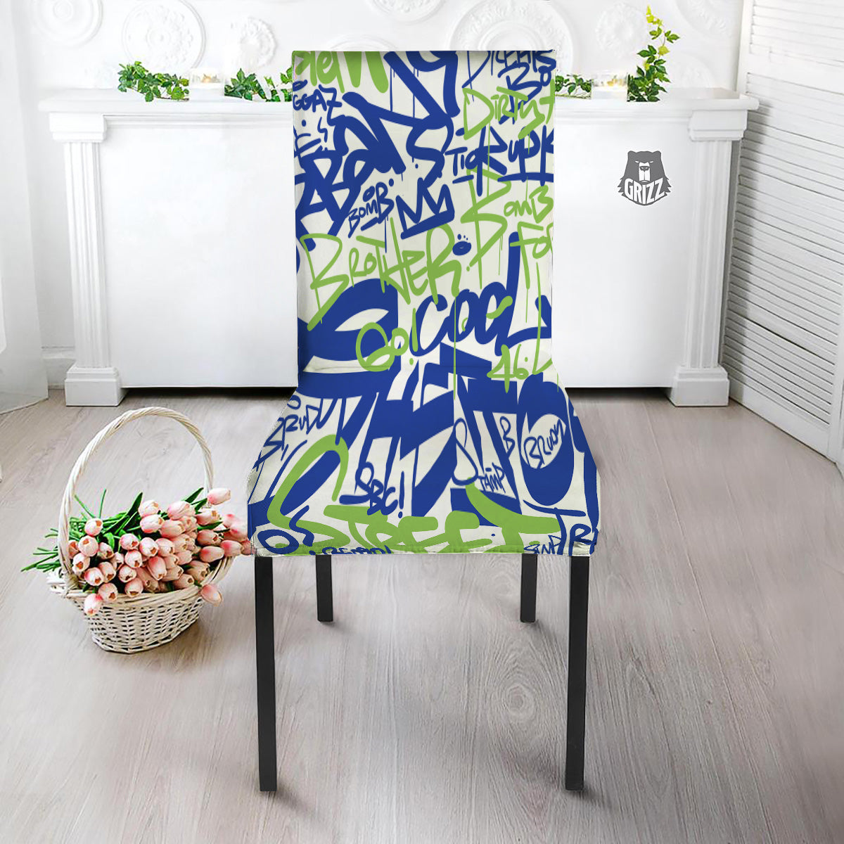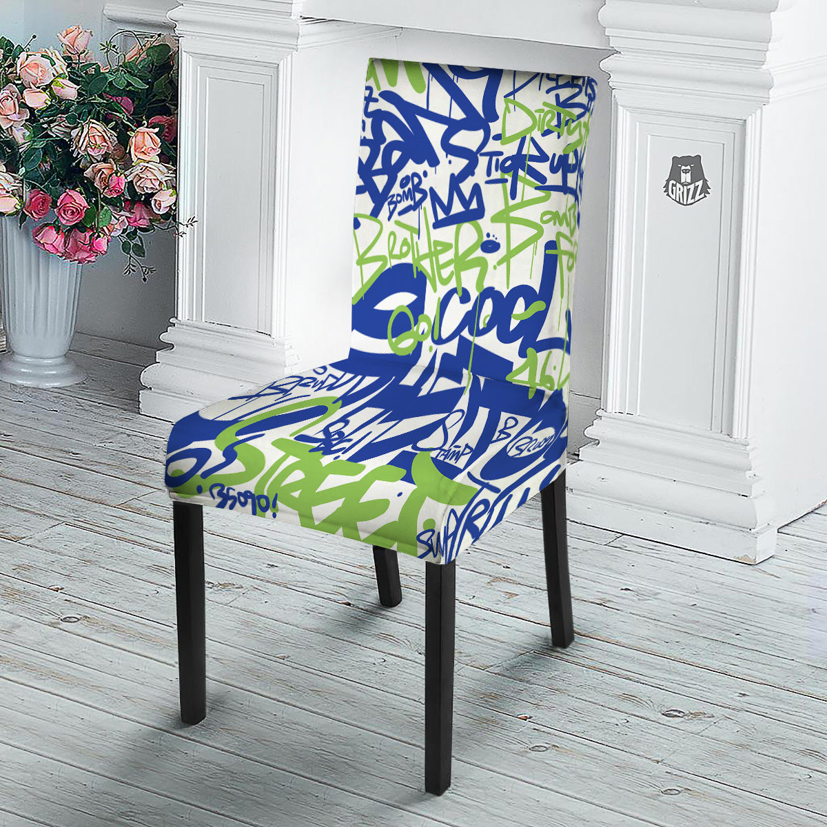 Looking for a unique chair cover ? Check out our Green Blue Urban Graffiti Text Print Pattern Dining Chair Slipcover at Grizzshopping. Our chair cover are handcrafted to the highest quality standards that custom made for you